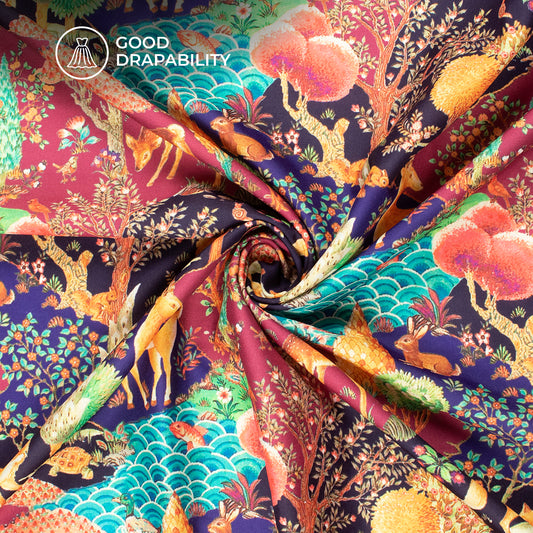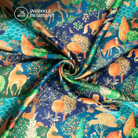 -10% offJungle Harmony: Exclusive Blue Digital Print Japan Satin Fabric Jungle Harmony: Exclusive Blue Digital Print Japan Satin Fabric