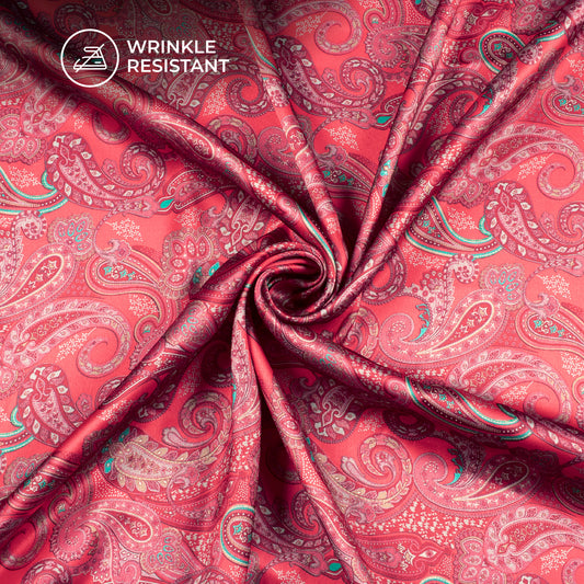-10% offLuxe Paisley: Premium Pink Digital Print Japan Satin Fabric Luxe Paisley: Premium Pink Digital Print Japan Satin Fabric