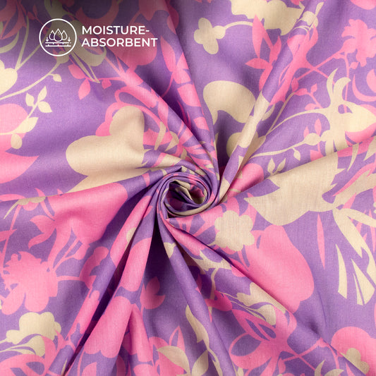 -11% offPastel Petals: Lavender Purple Digital Print Pure Cotton Mulmul Fabric Pastel Petals: Lavender Purple Digital Print Pure Cotton Mulmul Fabric