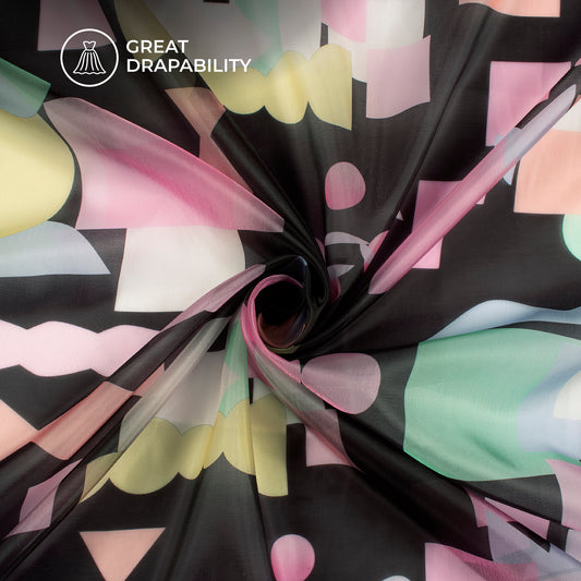 -8% offBlack Geometric Digital Print Organza Satin Fabric Black Geometric Digital Print Organza Satin Fabric