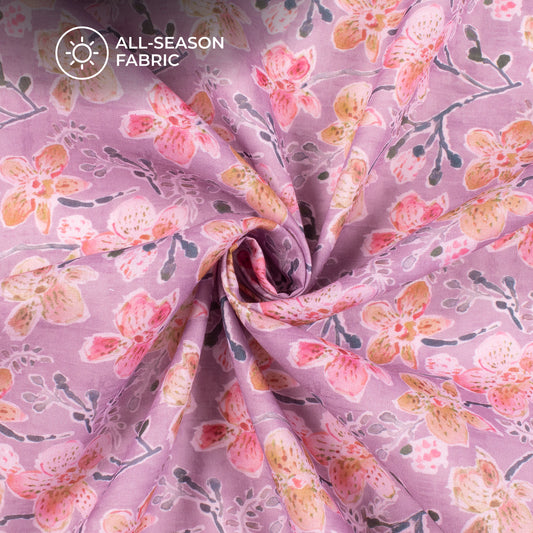 Lavender Purple Flora Digital Print Poly Cambric Fabric Lavender Purple Flora Digital Print Poly Cambric Fabric