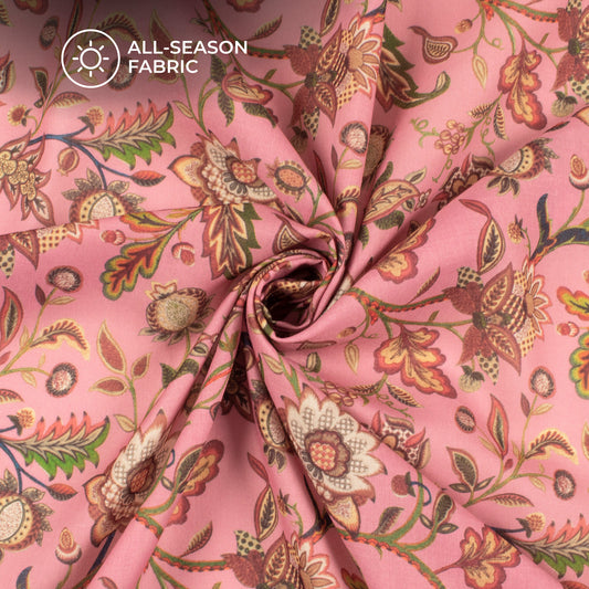 -25% offCoral Pink Floral Digital Print Poly Glazed Cotton Fabric Coral Pink Floral Digital Print Poly Glazed Cotton Fabric