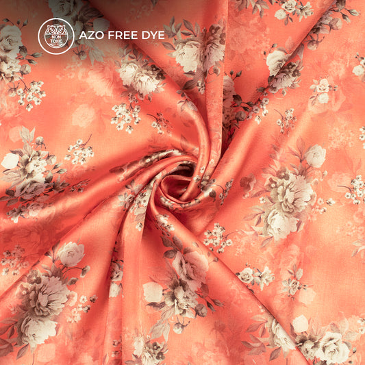-10% offSalmon Pink Floral Digital Print Japan Satin Fabric Salmon Pink Floral Digital Print Japan Satin Fabric
