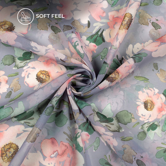 Pastel Tropics - Artistic Floral Lightweight Georgette Fabric Pastel Tropics - Artistic Floral Lightweight Georgette Fabric