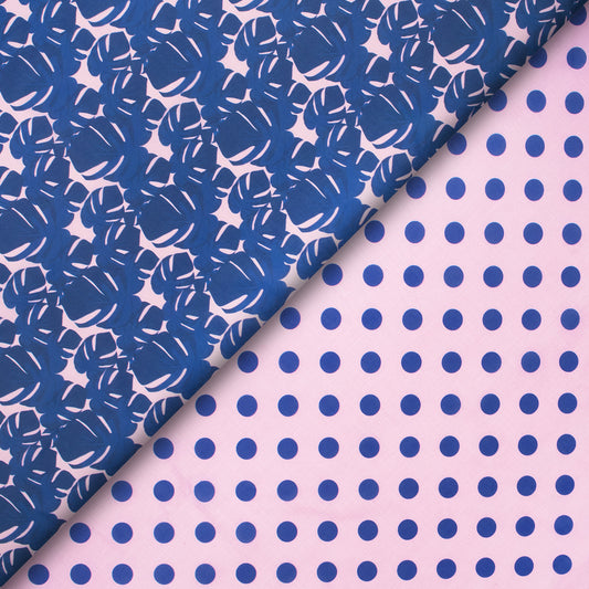 Dark Blue Polka Dots on Pastel Pink Digital Print Poly Linen Slub Fabric Dark Blue Polka Dots on Pastel Pink Digital Print Poly Linen Slub Fabric