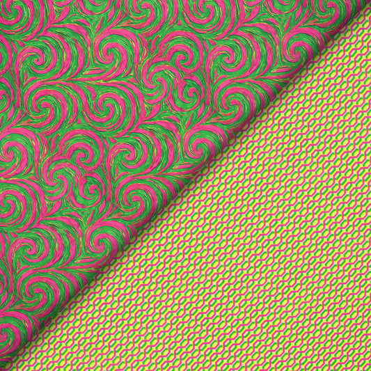 Magenta Pink And Forest Green Warp Abstract Digital Print Poly Linen Slub Fabric Magenta Pink And Forest Green Warp Abstract Digital Print Poly Linen Slub Fabric