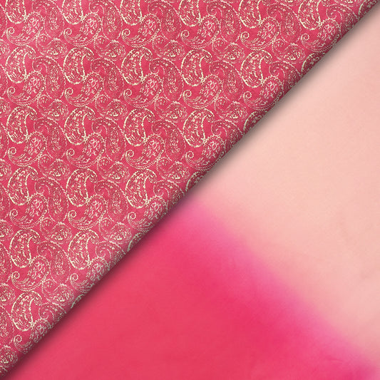 Magenta Pink Paisley Digital Print Poly Linen Slub Fabric Magenta Pink Paisley Digital Print Poly Linen Slub Fabric
