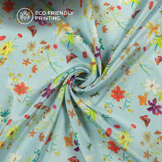 Mint Green Floral Digital Print Chiffon Satin Fabric Mint Green Floral Digital Print Chiffon Satin Fabric