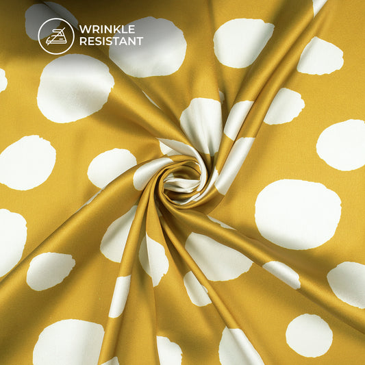 Polka Dots Harvest Golden Colour Digital Print Japan Satin Fabric Polka Dots Harvest Golden Colour Digital Print Japan Satin Fabric