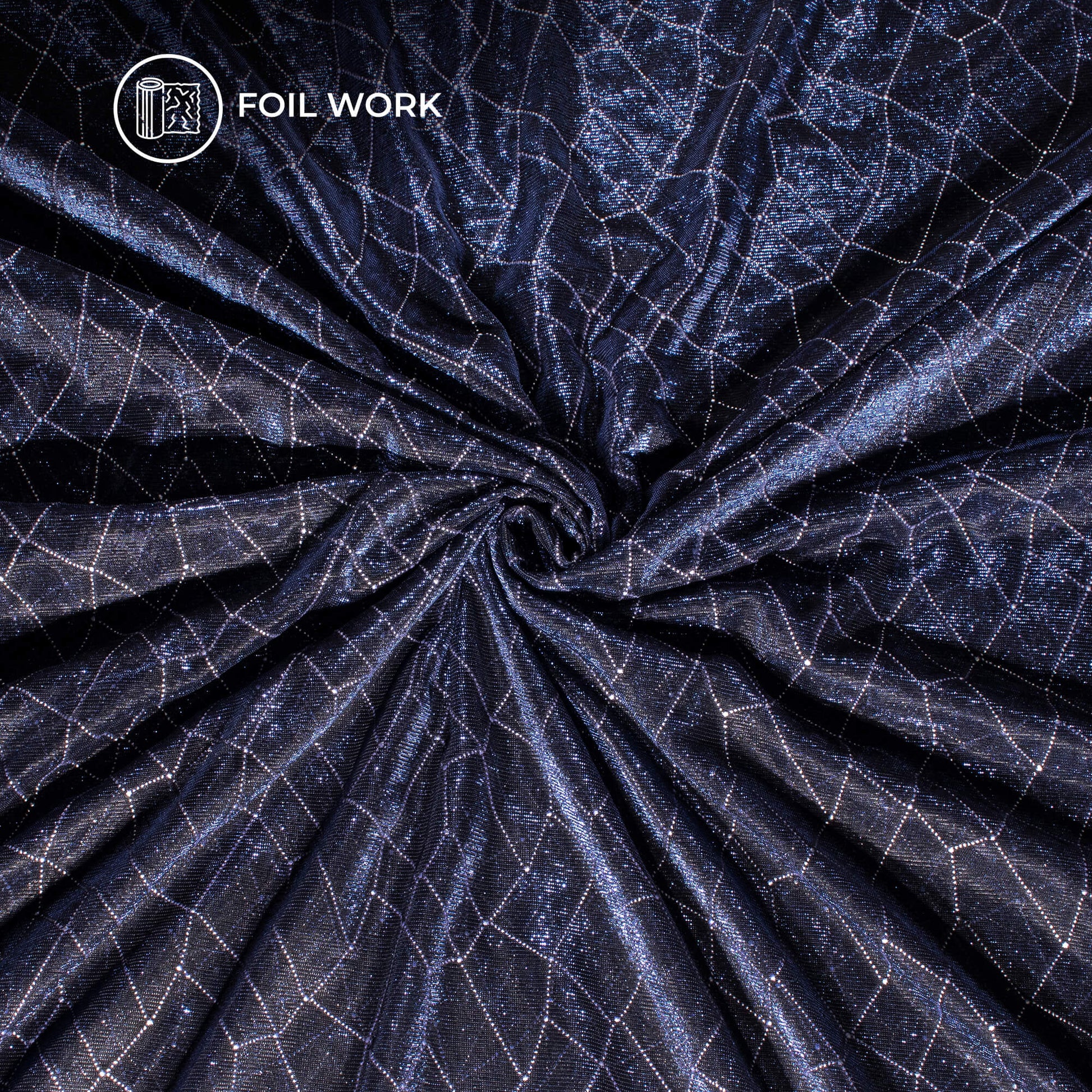 Smart Silver Geometric Foil Work On Imported Lycra Fabric