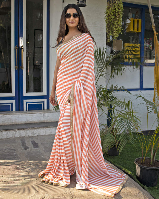 Peach And White Stripes Pattern Digital Print Georgette Saree With Zari Sequins Lace Border Peach And White Stripes Pattern Digital Print Georgette Saree With Zari Sequins Lace BorderRegular price ₹ 1,599.00Unit price perSale price ₹ 1,599.00 Regular price₹ 1,999.0020% offSale