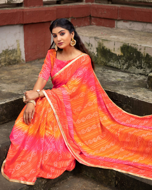 Candy Red And Carrot Orange Bandhanii Pattern Digital Print Crepe Silk Saree With Sequins Lace Candy Red And Carrot Orange Bandhanii Pattern Digital Print Crepe Silk Saree With Sequins LaceRegular price ₹ 1,759.00Unit price perSale price ₹ 1,759.00 Regular price₹ 2,199.0020% offSale