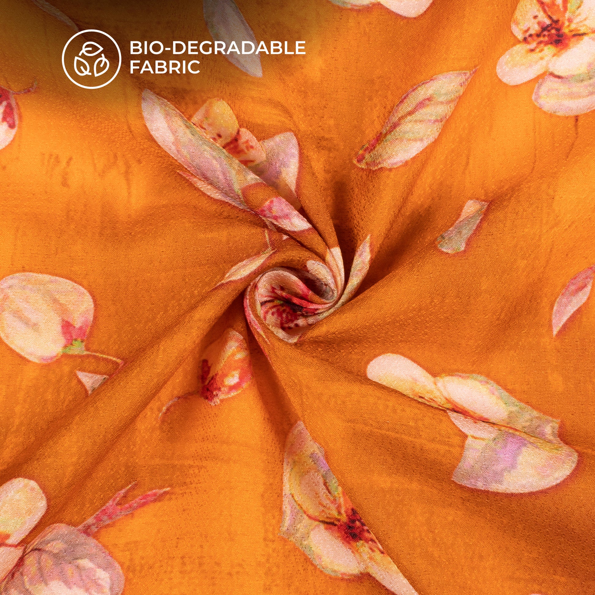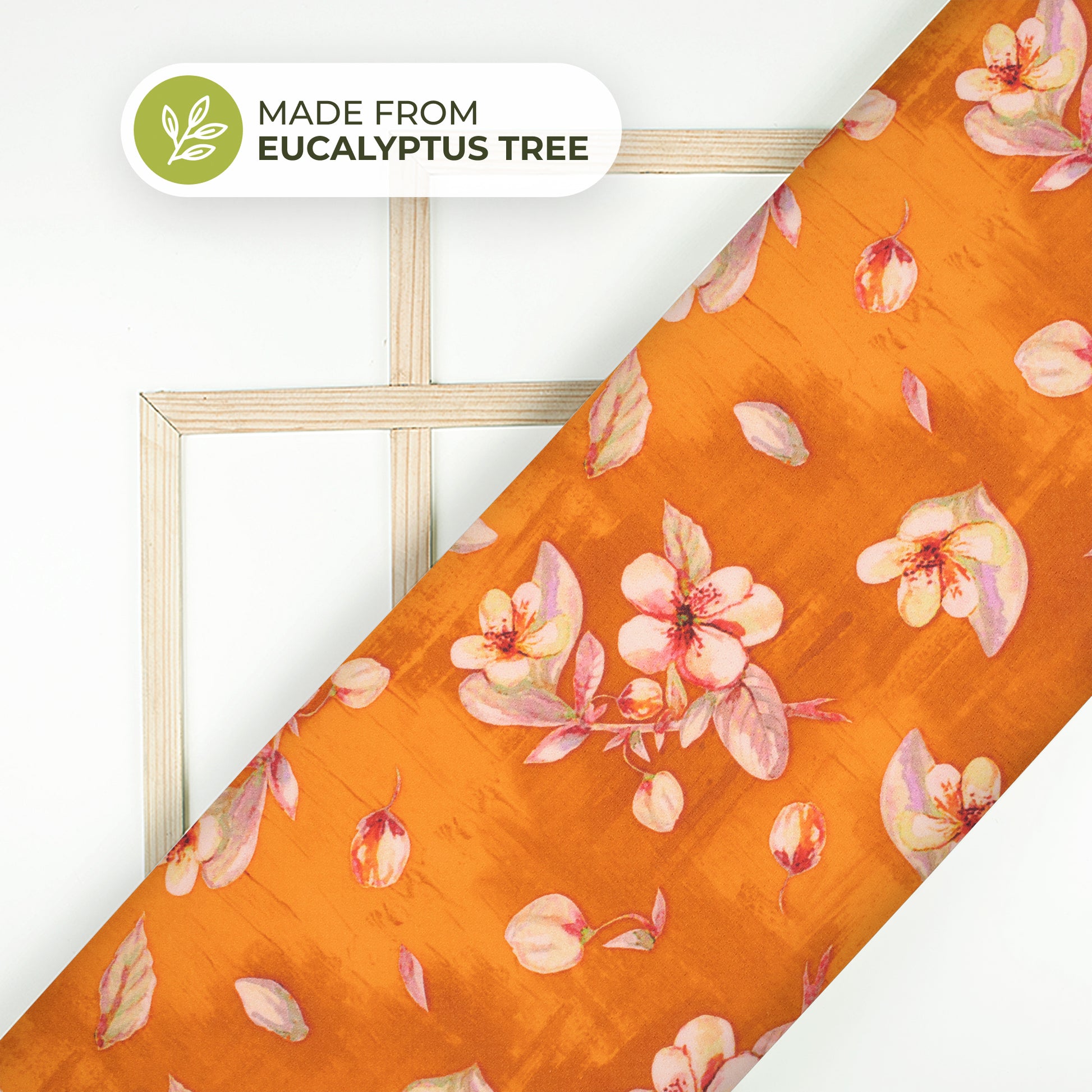Tiger Orange Floral Printed Sustainable Eucalyptus Fabric