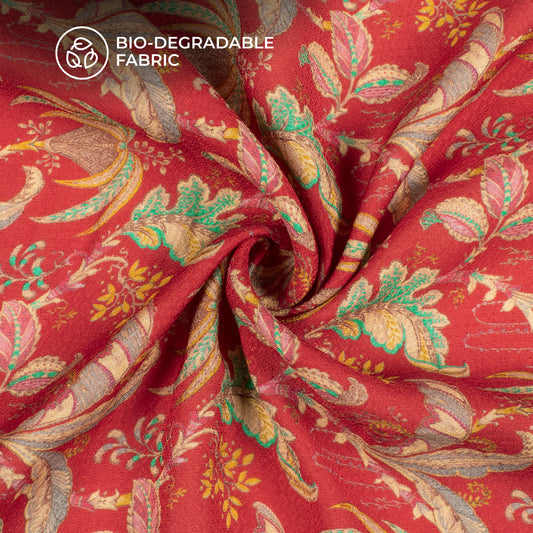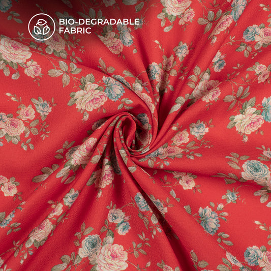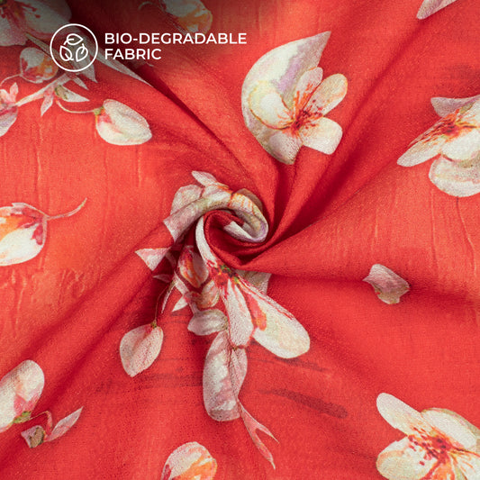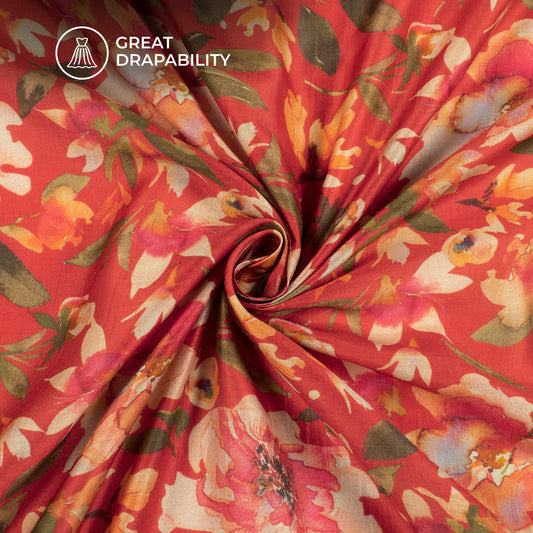 Carmine Red Floral Printed Sustainable Orange Fabric Carmine Red Floral Printed Sustainable Orange Fabric