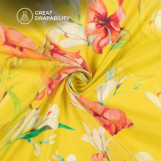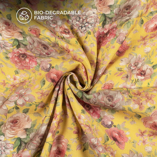 Amber Yellow Floral Printed Sustainable Eucalyptus Fabric Amber Yellow Floral Printed Sustainable Eucalyptus Fabric