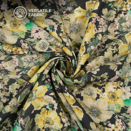 Yellow Green Floral Printed Sustainable Eucalyptus Fabric Yellow Green Floral Printed Sustainable Eucalyptus Fabric
