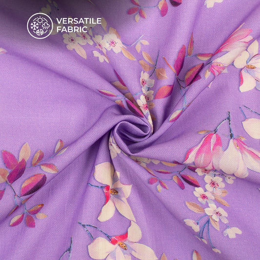 Lilac Purple Floral Printed Sustainable Milk Fabric Lilac Purple Floral Printed Sustainable Milk Fabric