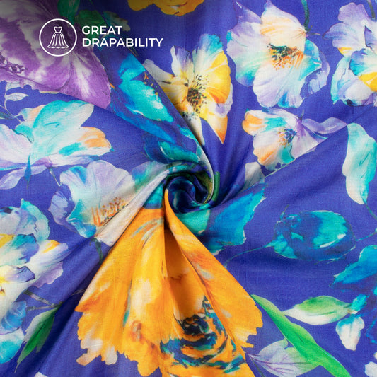 Cobalt Blue Floral Printed Sustainable Orange Fabric Cobalt Blue Floral Printed Sustainable Orange Fabric