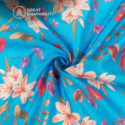 -20% offAzure Blue Floral Printed Sustainable Orange Fabric Azure Blue Floral Printed Sustainable Orange Fabric