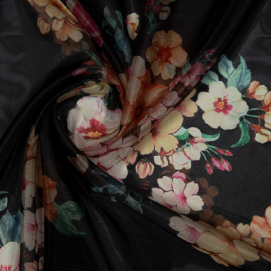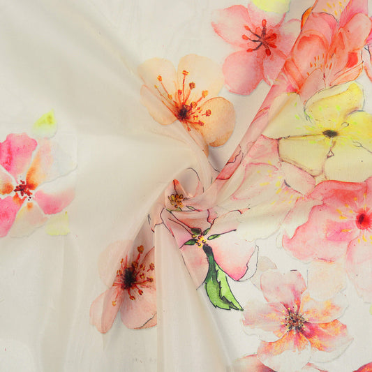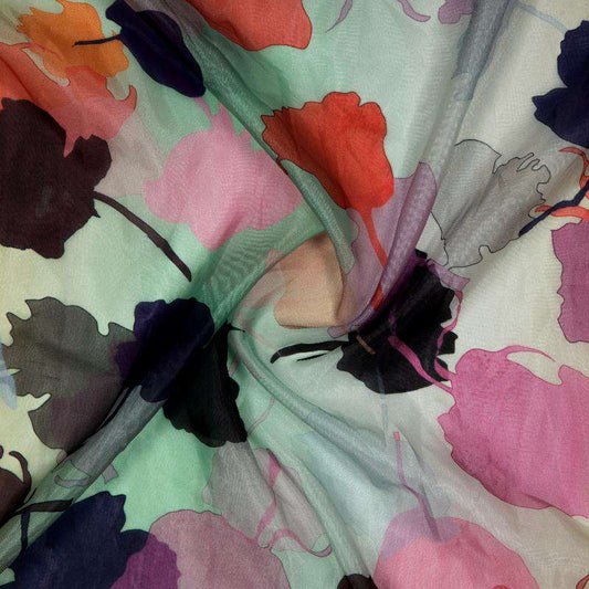 -10% offMulticolor Floral Digital Print Organza Satin Fabric Multicolor Floral Digital Print Organza Satin Fabric