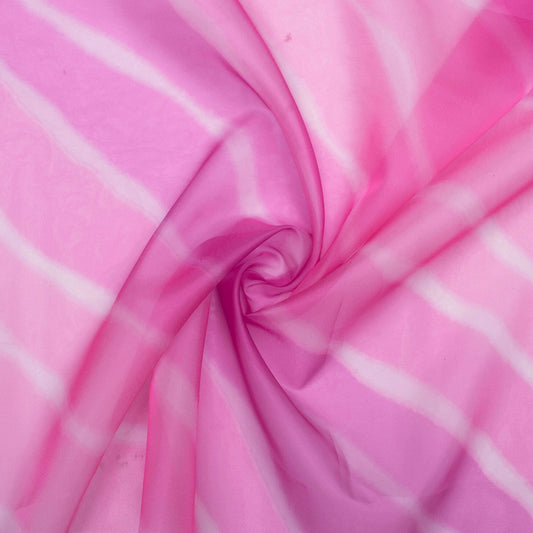 Pink Leheriya Pattern Digital Print Organza Satin Fabric Pink Leheriya Pattern Digital Print Organza Satin Fabric