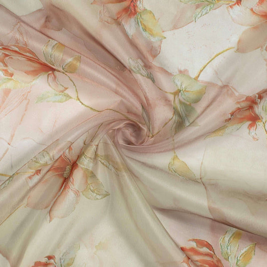 -10% offOff White And Orange Floral Pattern Digital Print Organza Satin Fabric Off White And Orange Floral Pattern Digital Print Organza Satin Fabric