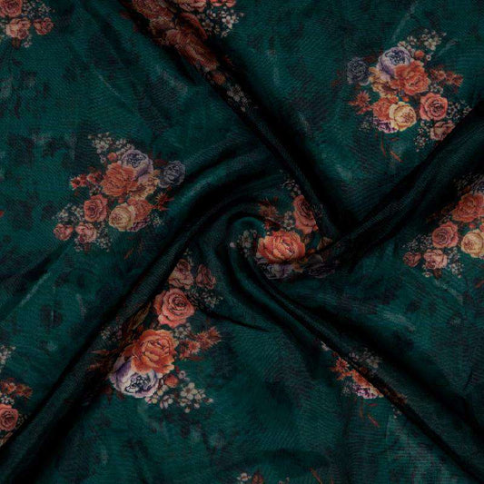 -10% offDark Green Floral Digital Print Organza Satin Fabric Dark Green Floral Digital Print Organza Satin Fabric
