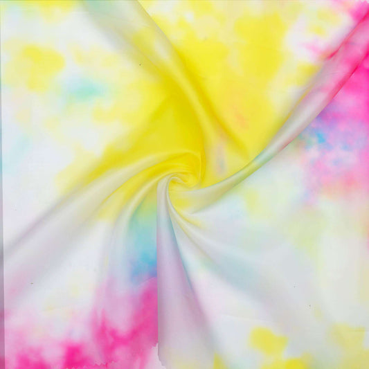 -10% offPink And Yellow Tye And Dye Pattern Digital Print Organza Satin Fabric Pink And Yellow Tye And Dye Pattern Digital Print Organza Satin Fabric