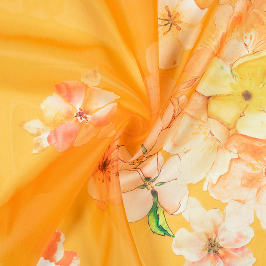 -10% offHoney Yellow And Orange Floral Pattern Digital Print Organza Satin Fabric Honey Yellow And Orange Floral Pattern Digital Print Organza Satin Fabric
