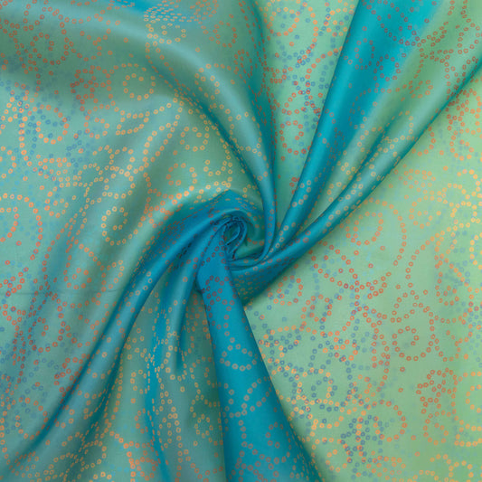 -10% offTurquoise And Brown Bandhanii Pattern Digital Print Organza Satin Fabric Turquoise And Brown Bandhanii Pattern Digital Print Organza Satin Fabric