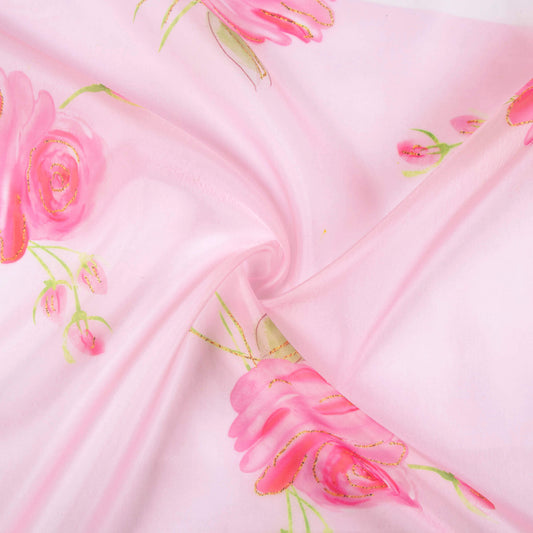 -10% offBaby Pink Floral Pattern Digital Print Organza Satin Fabric Baby Pink Floral Pattern Digital Print Organza Satin Fabric