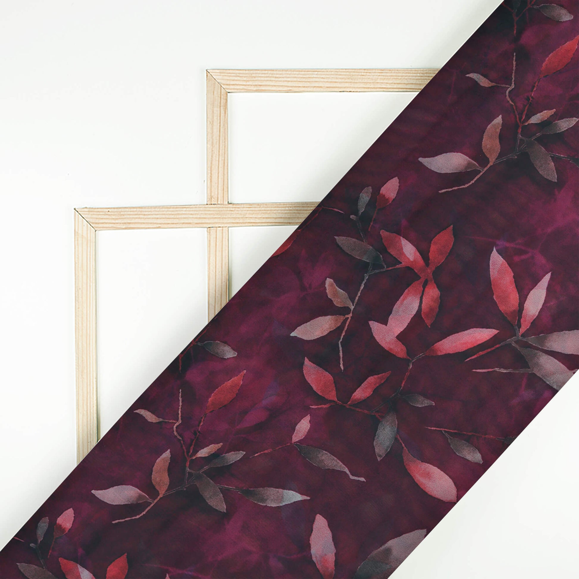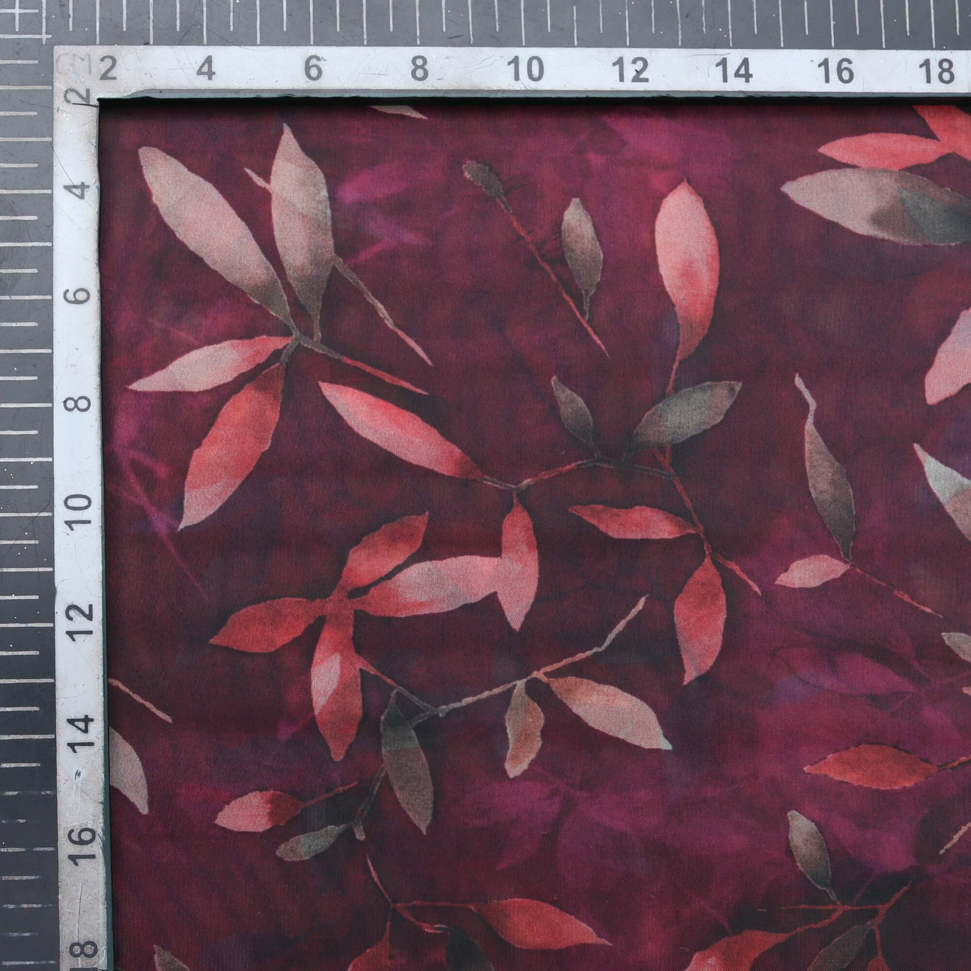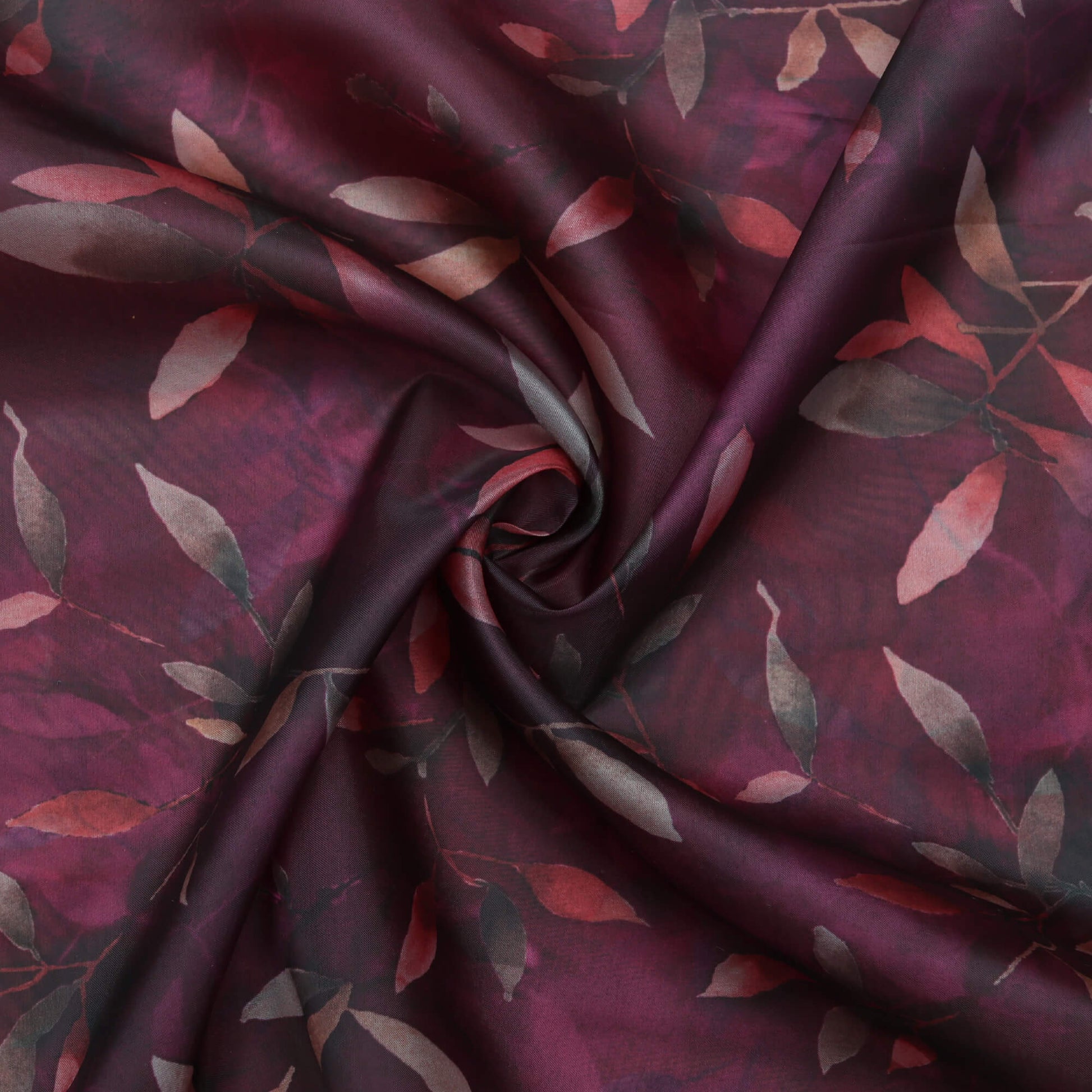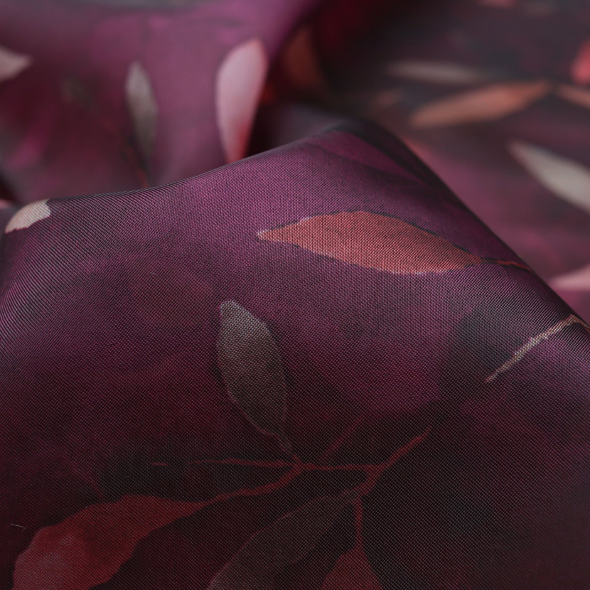 Wine Purple And Red Floral Pattern Digital Print Premium Organza Satin Fabric