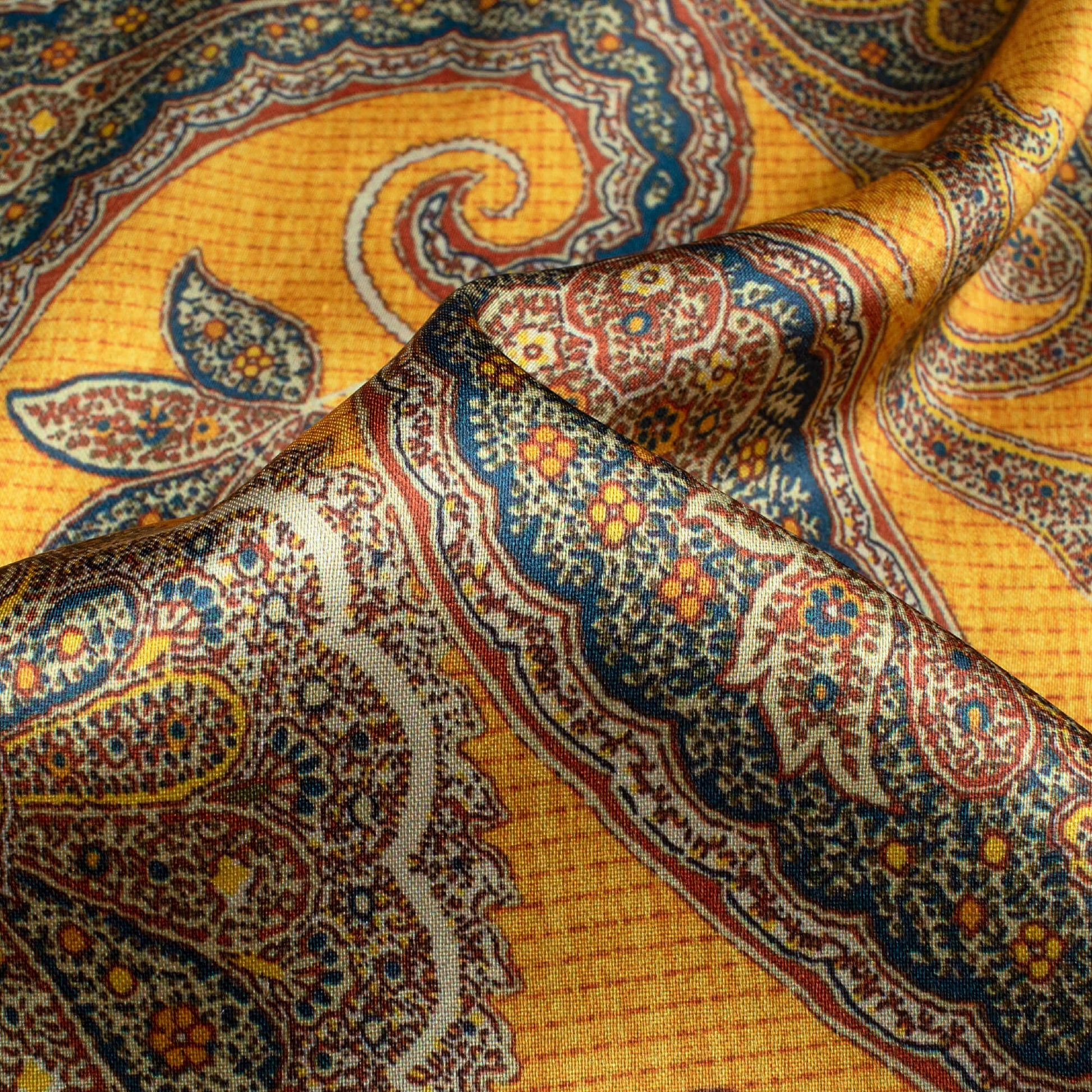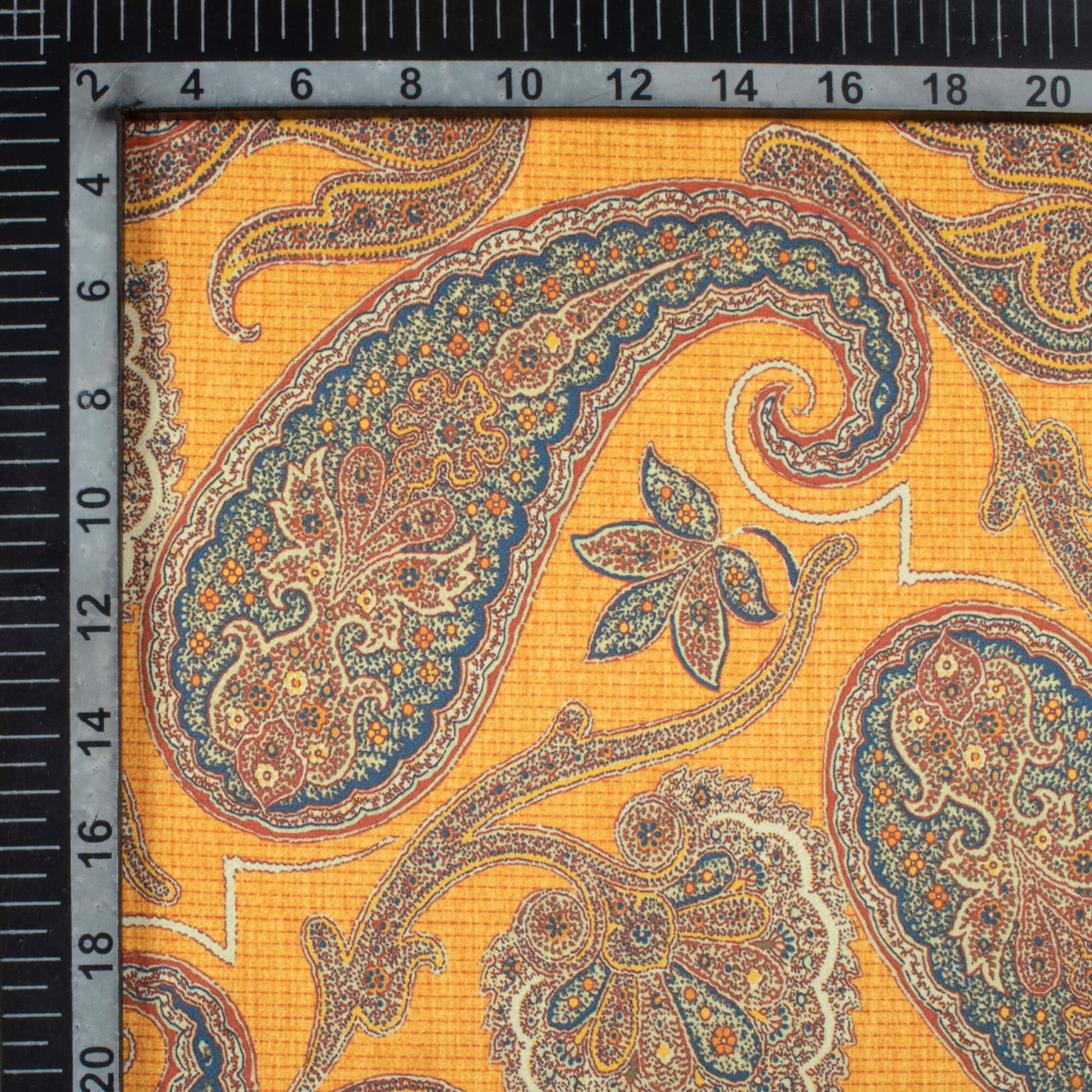 Dijon Yellow And Sacramento Green Paisley Pattern Digital Print Japan Satin Fabric