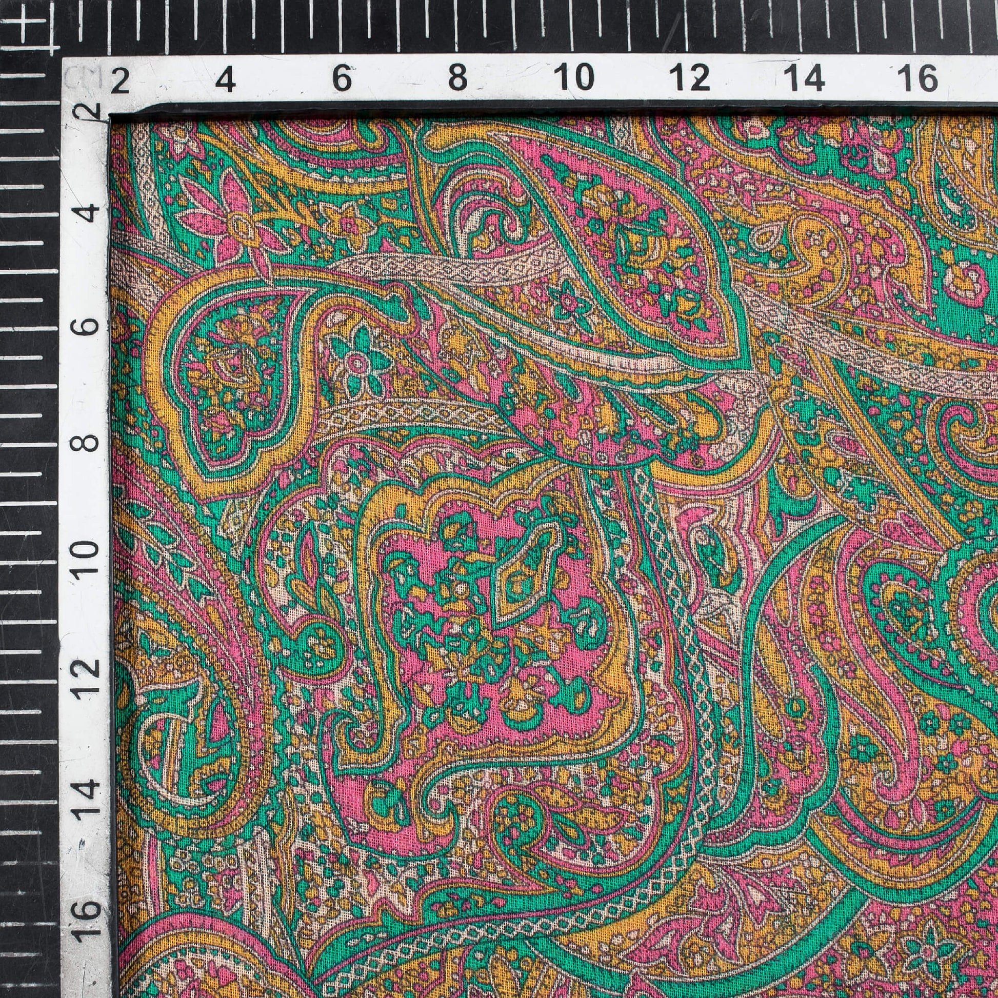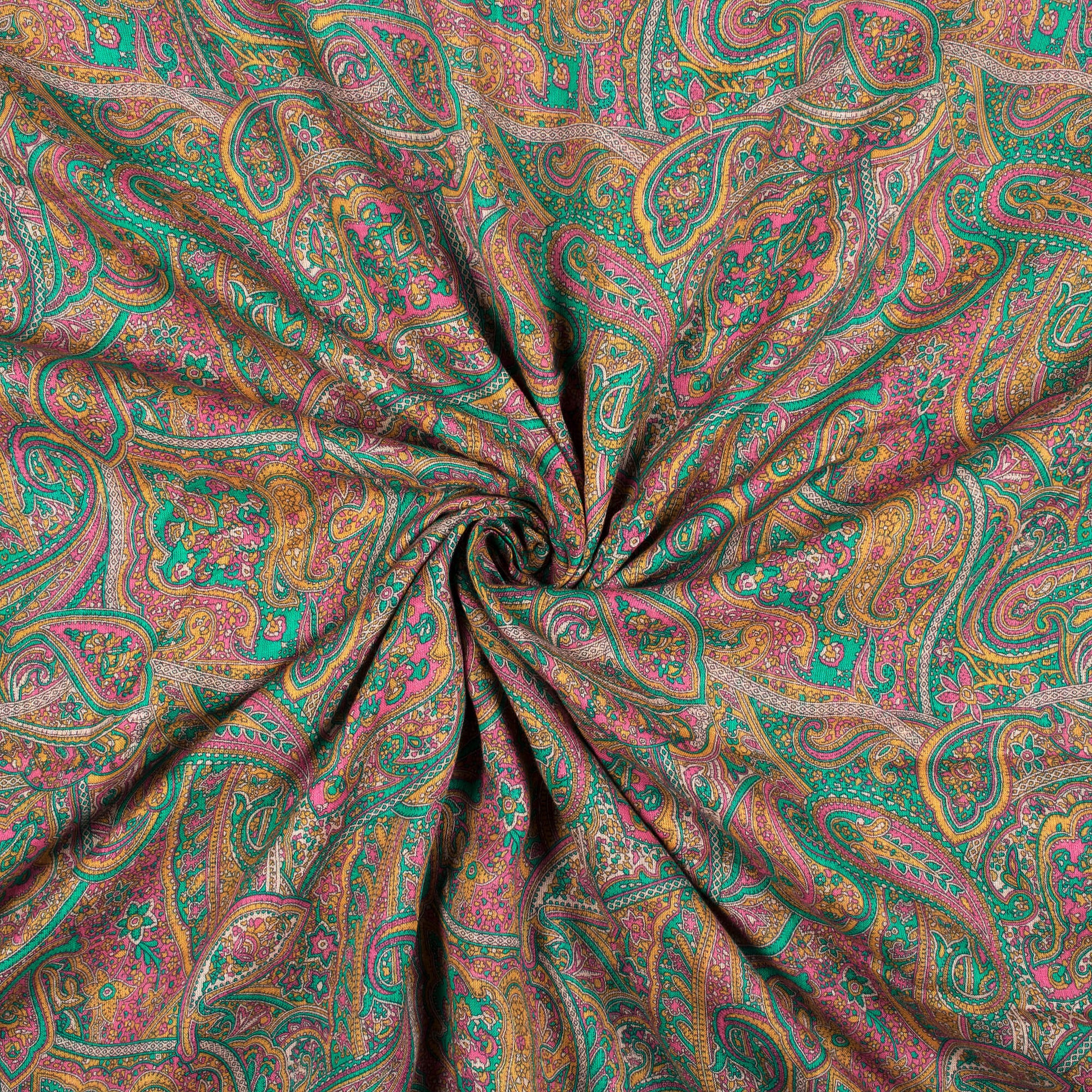 Mustard Yellow And Turquoise Blue Paisley Pattern Digital Print Pure Cotton Mulmul Fabric