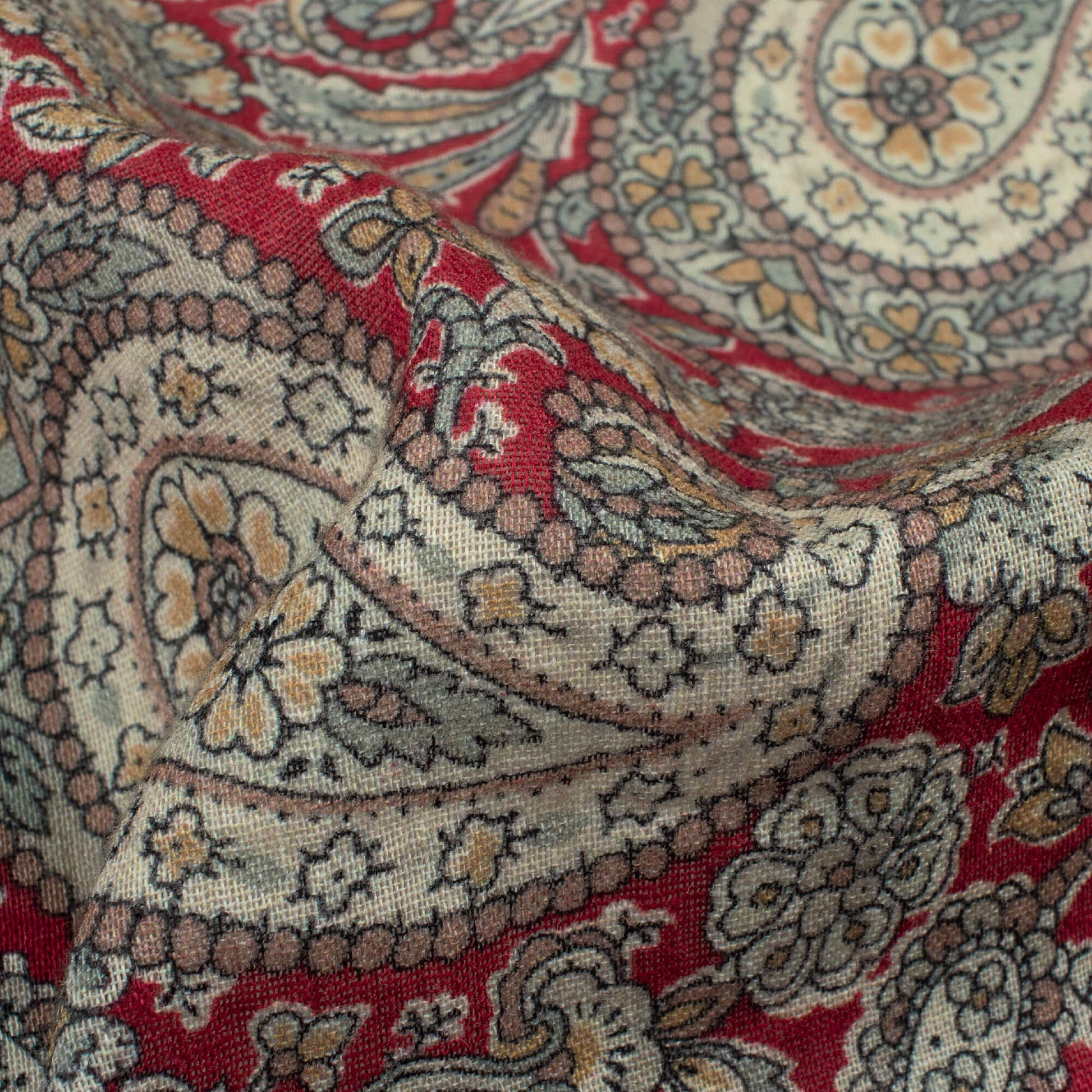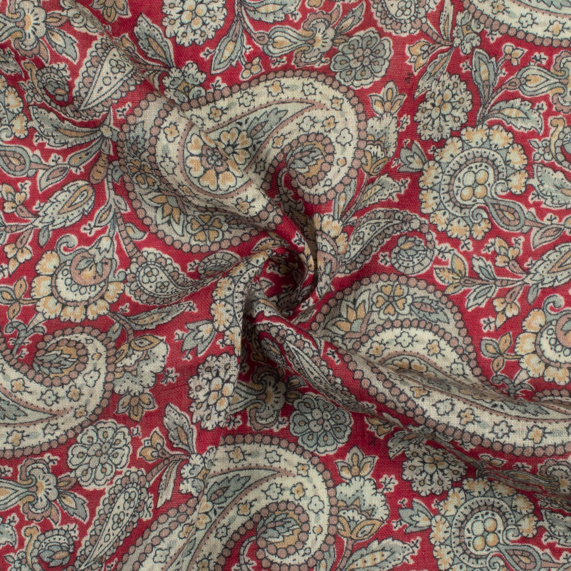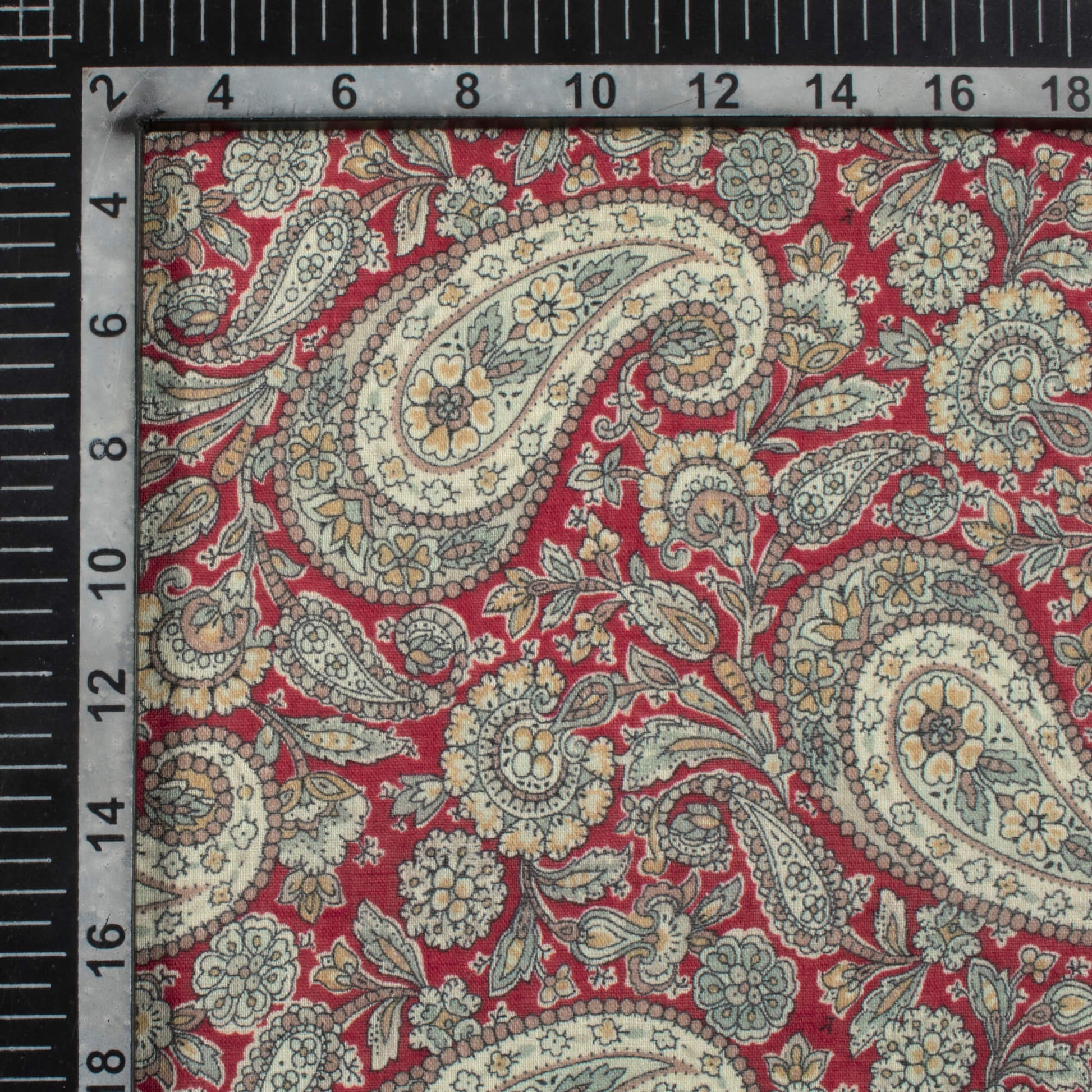 Red And Cream Paisley Pattern Digital Print Pure Cotton Mulmul Fabric