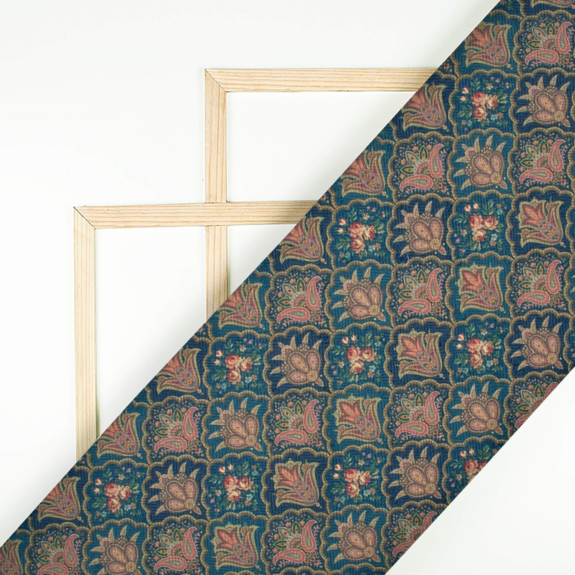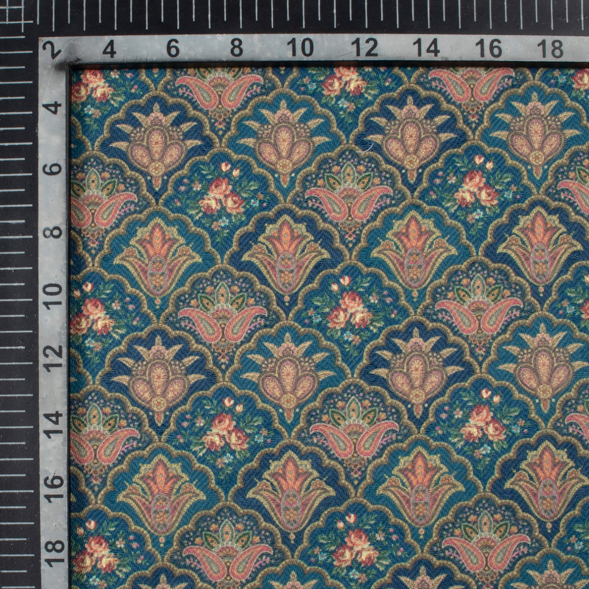 Pine Green And Red Paisley Pattern Digital Print Elegant Blend Pashmina Fabric