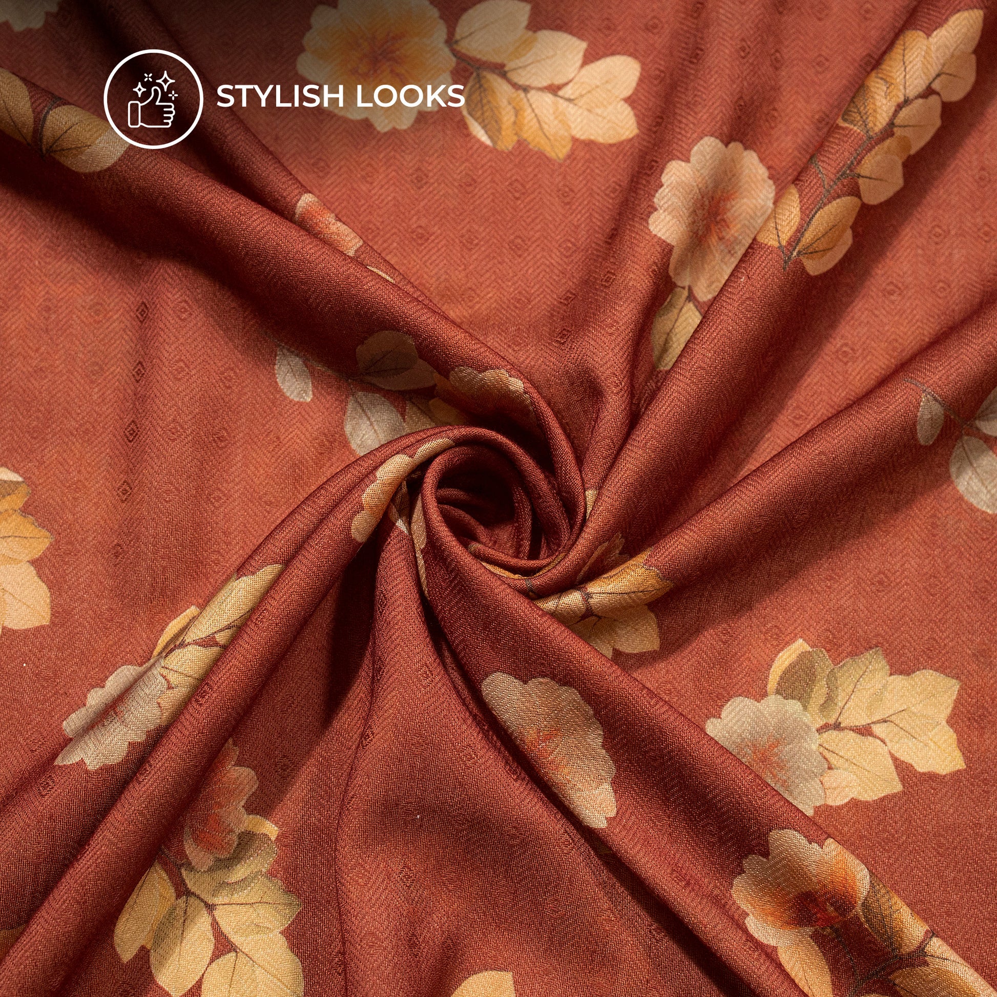 Auburn Floral Digital Print Blend Pashmina Fabric
