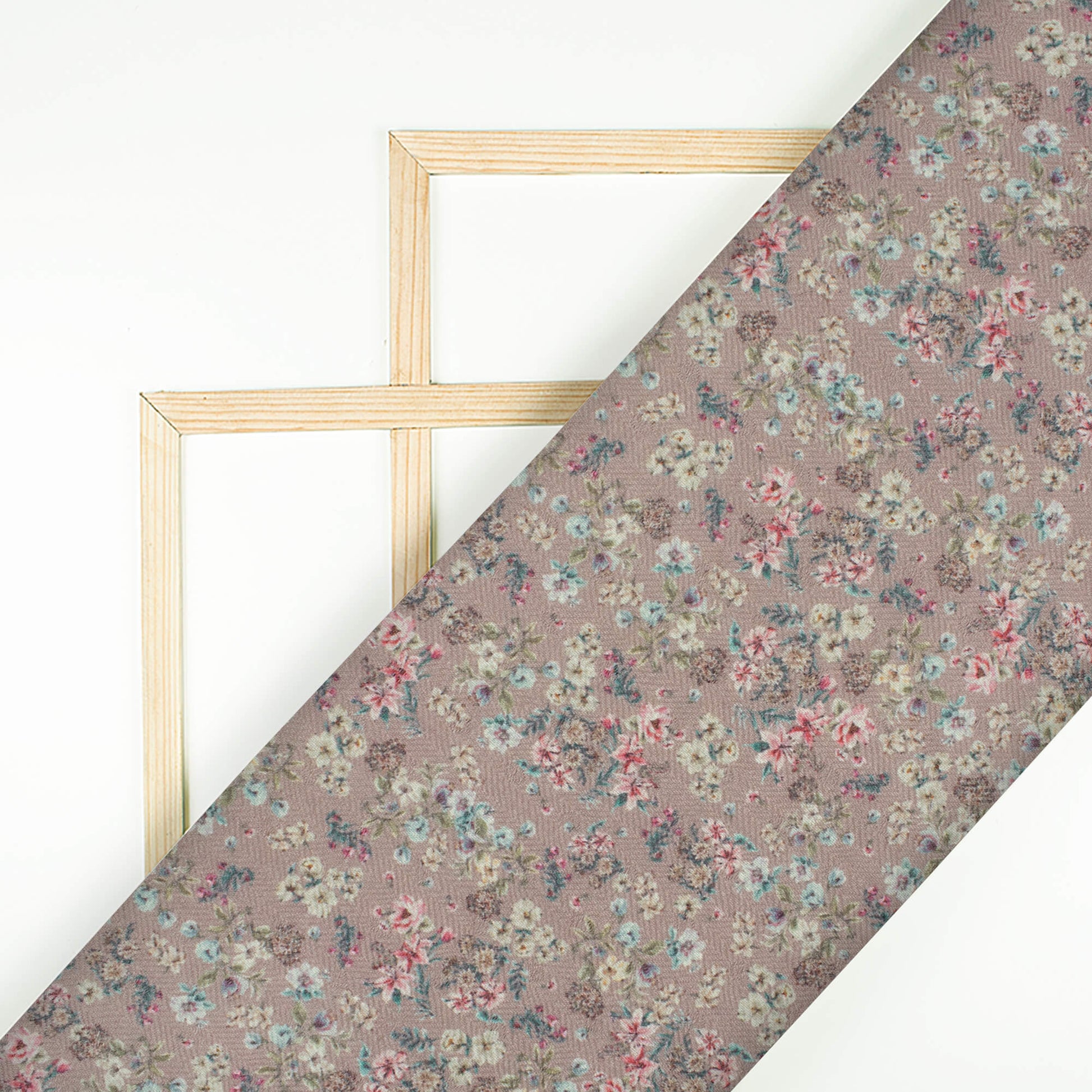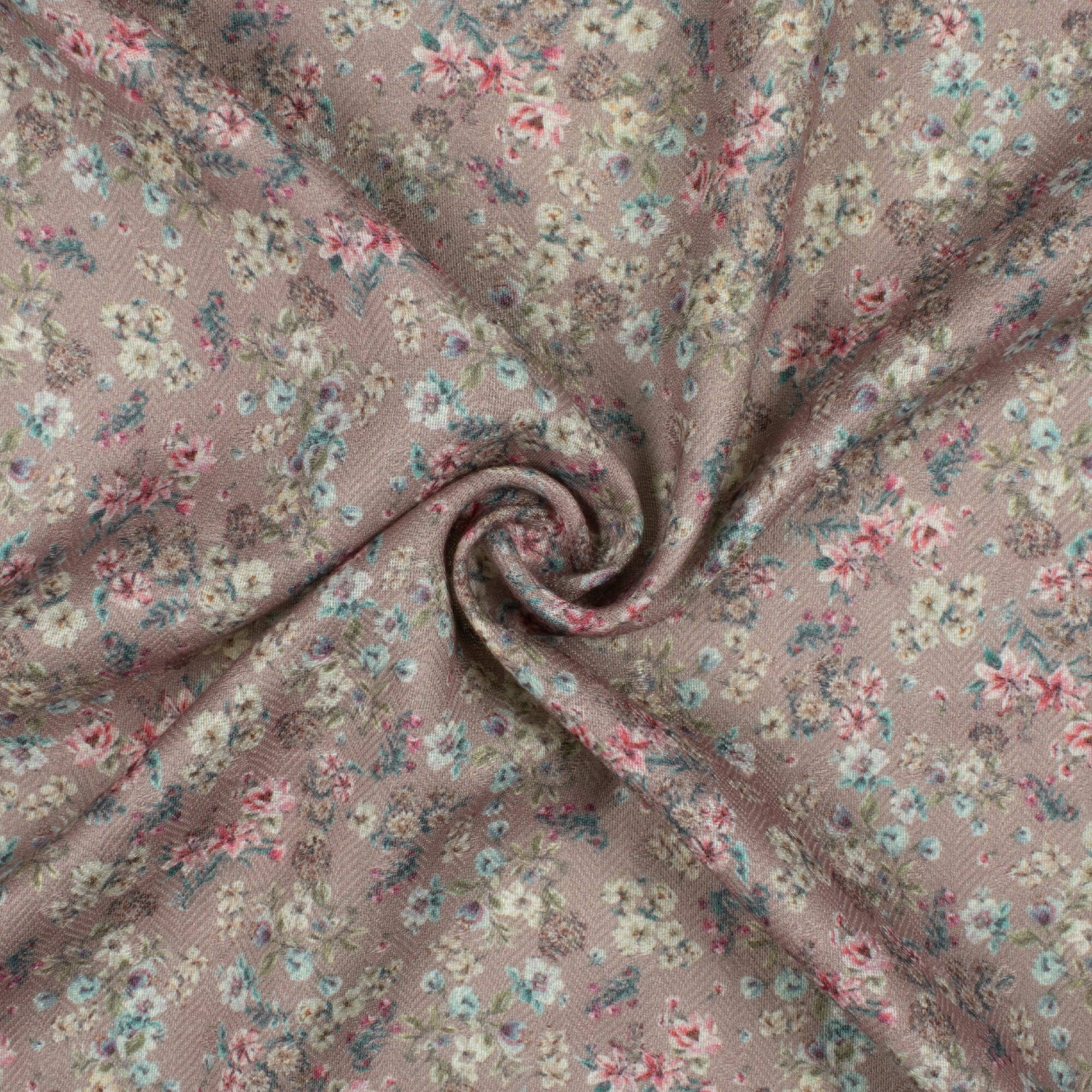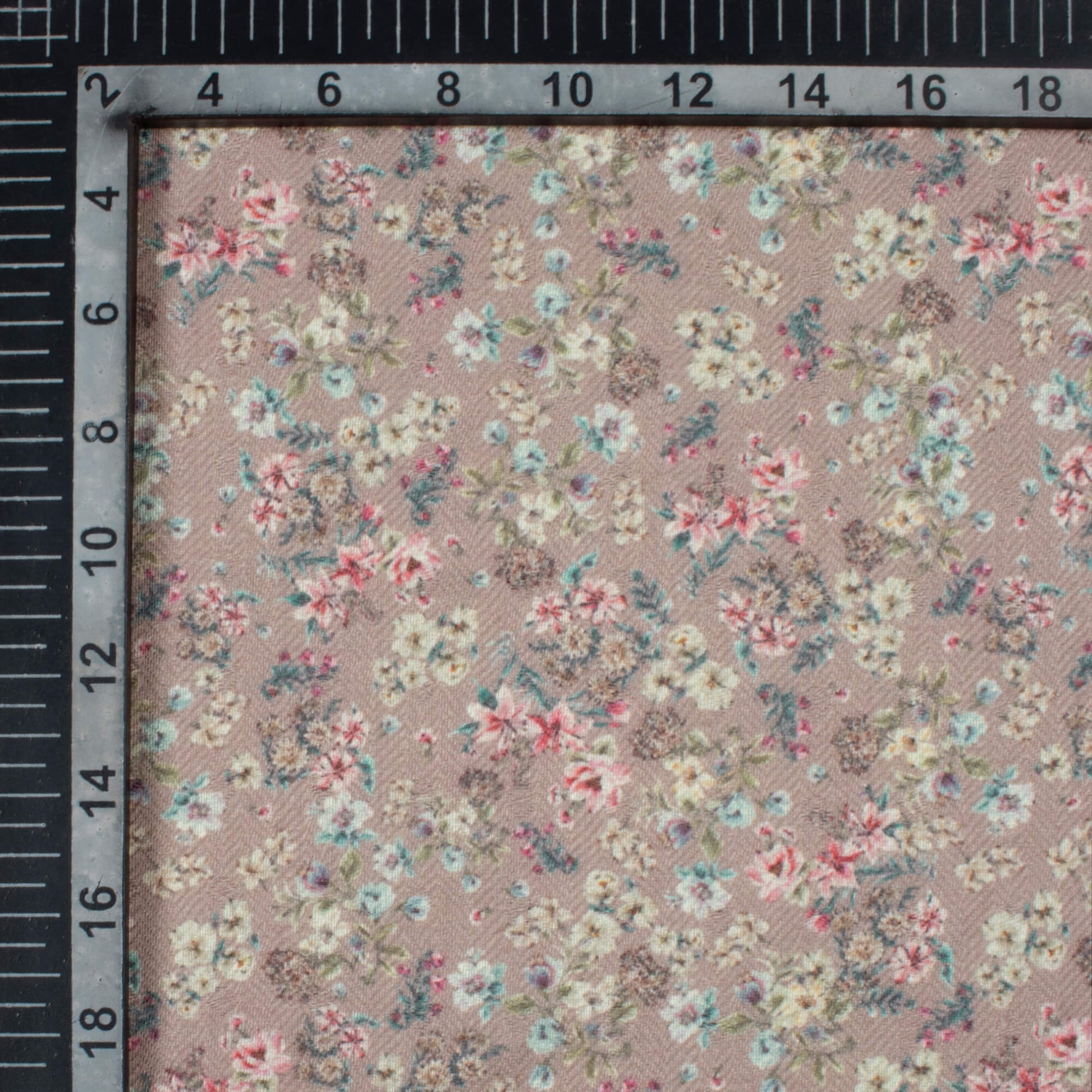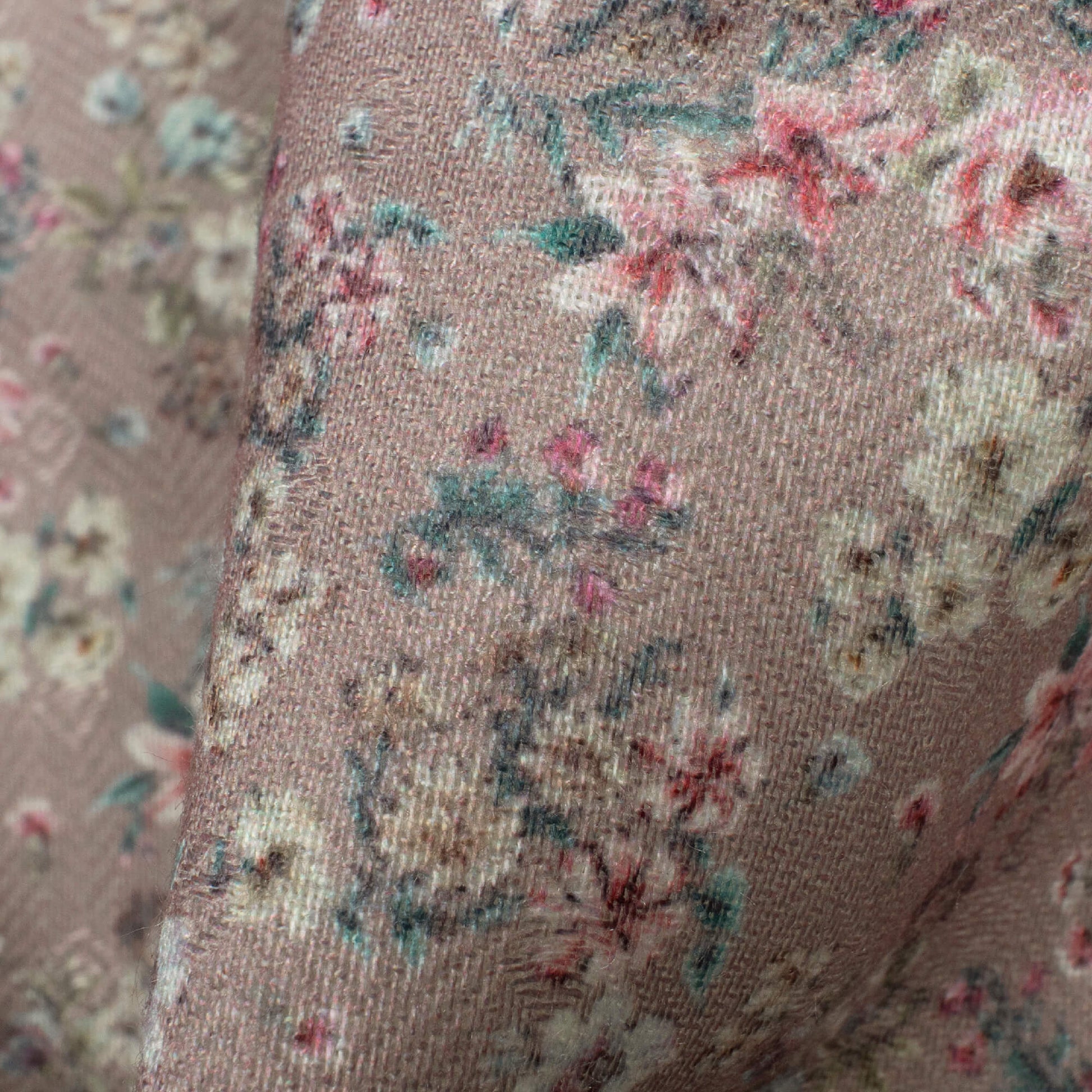Beaver Brown And Pink Floral Pattern Digital Print Elegant Blend Pashmina Fabric
