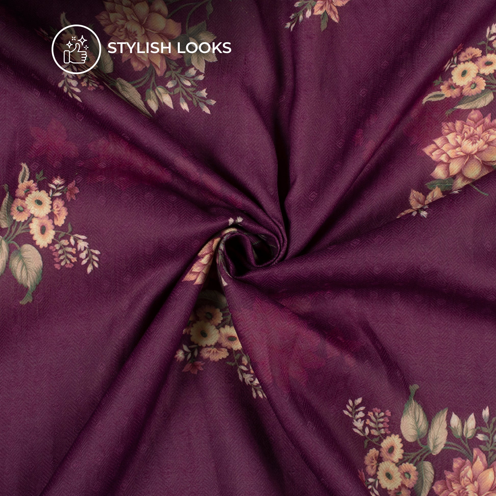 Byzantinm Purple Floral Digital Print Blend Pashmina Fabric
