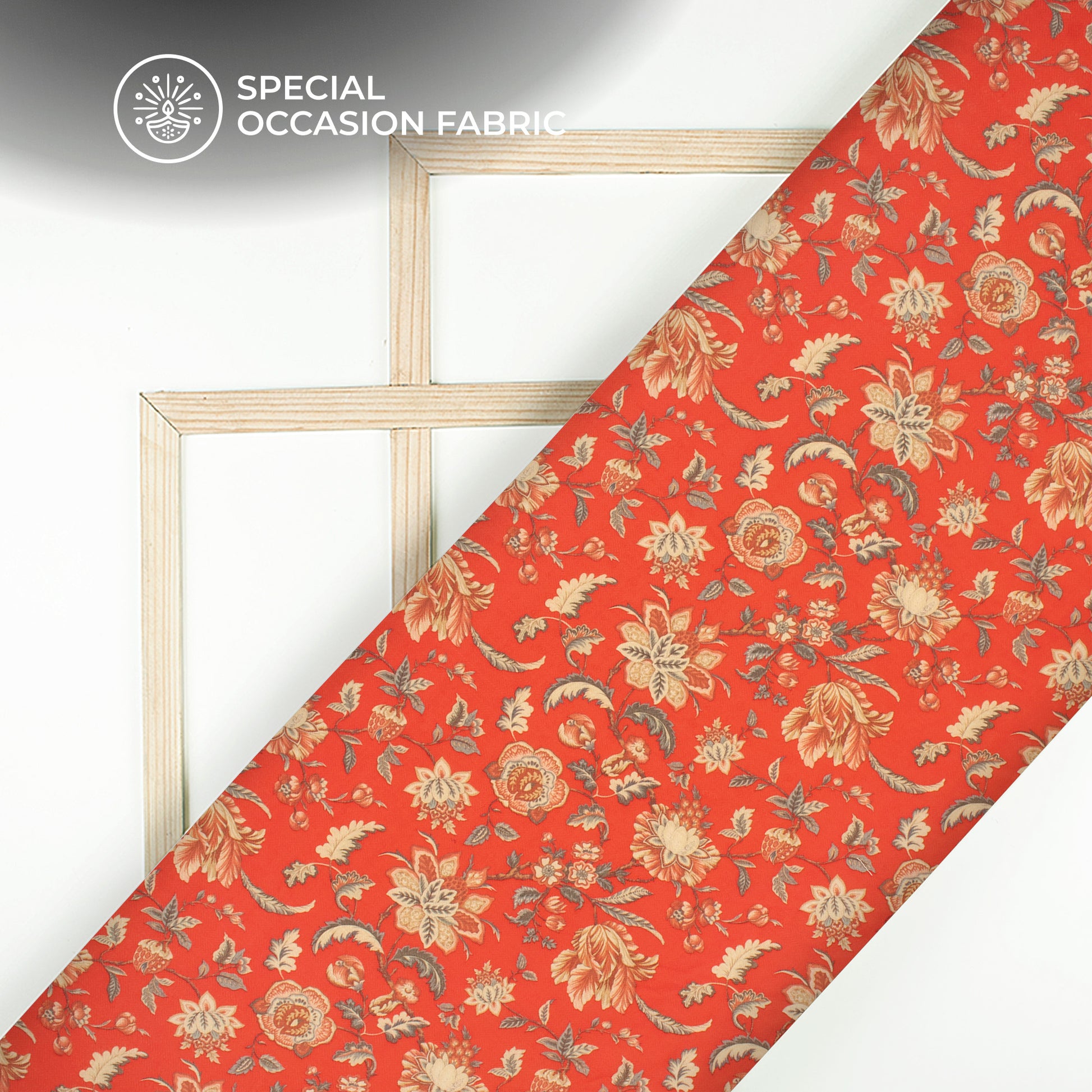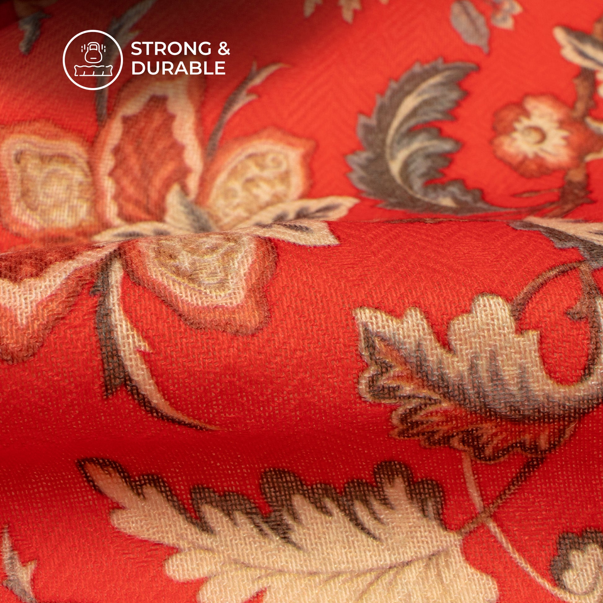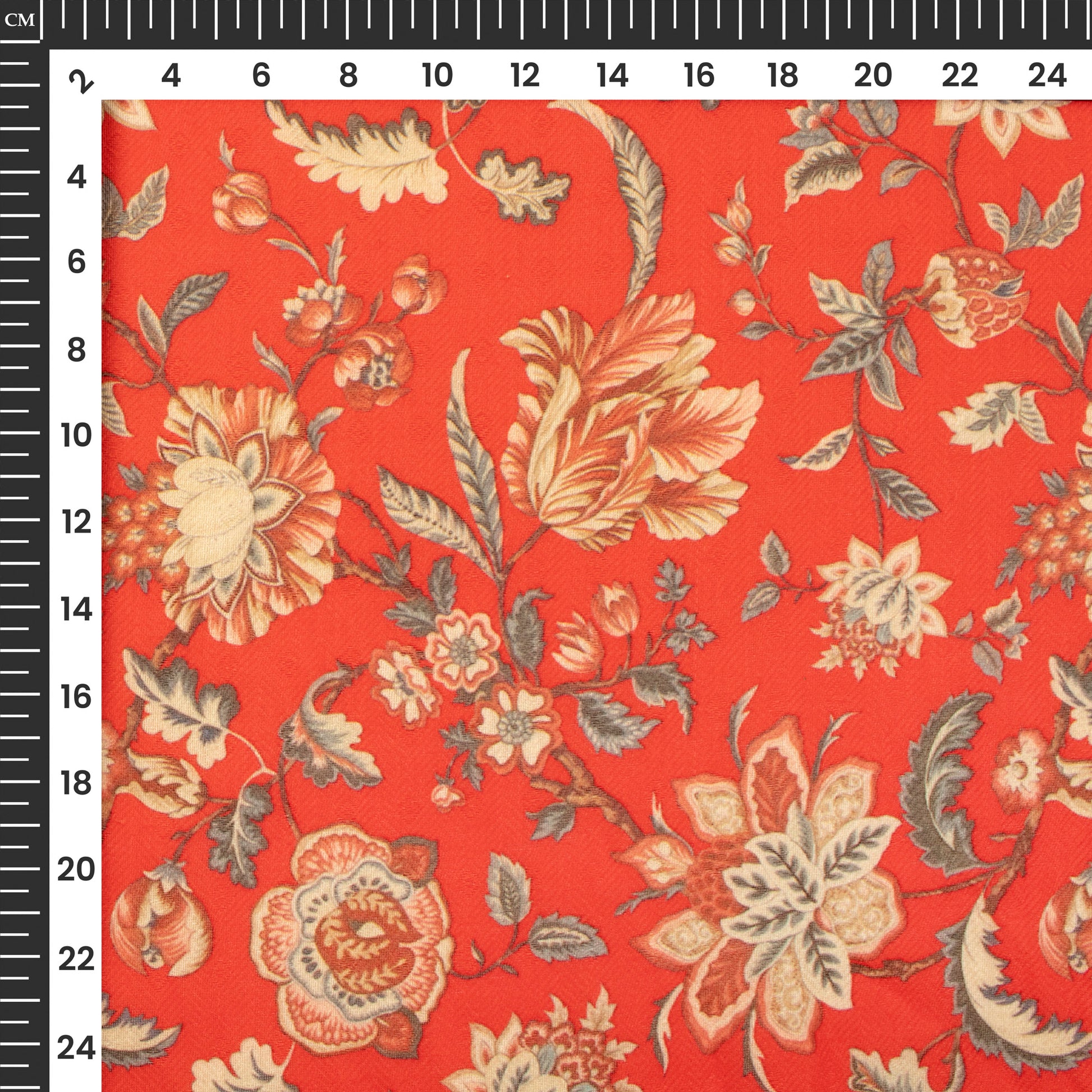 Candy Red Floral Digital Print Blend Pashmina Fabric