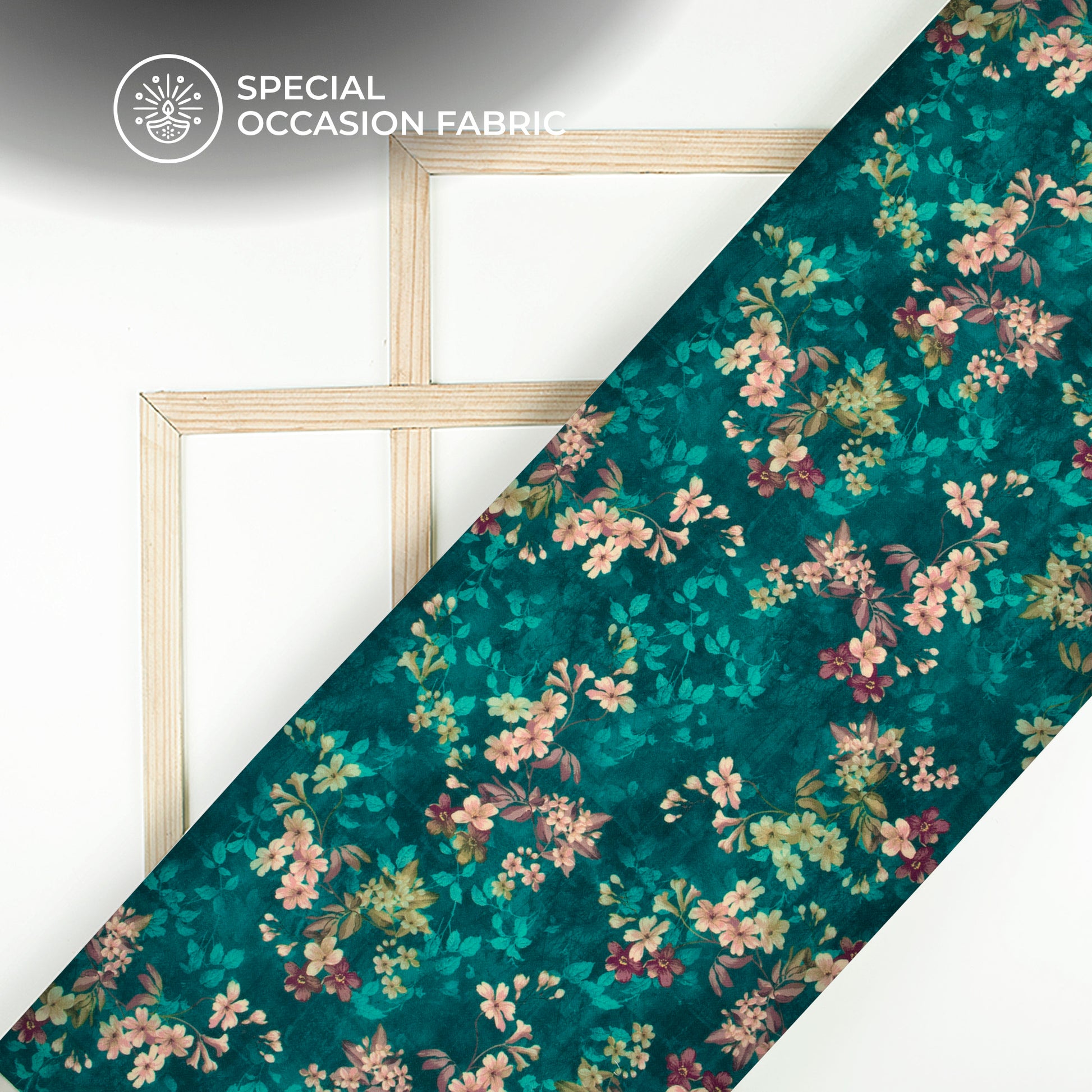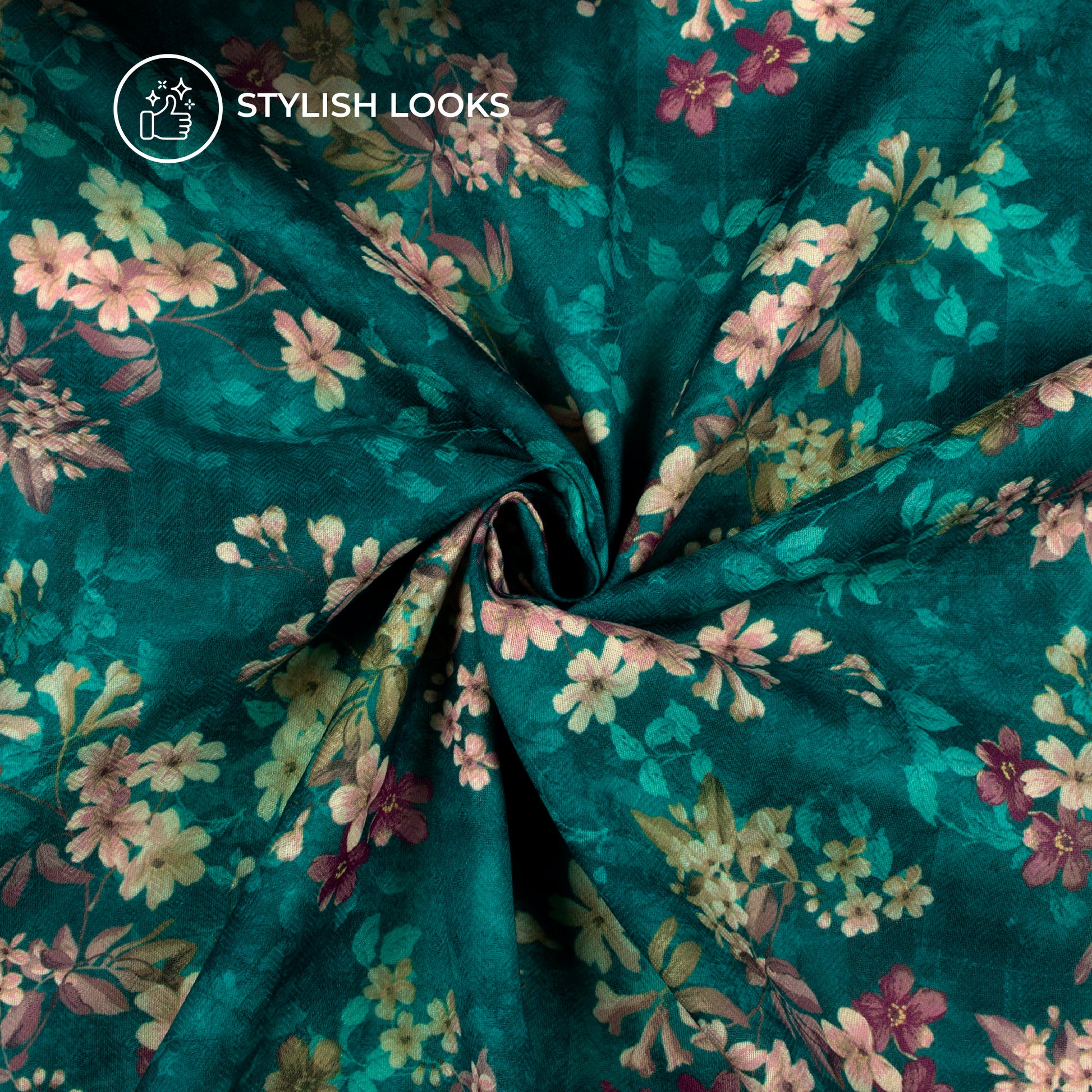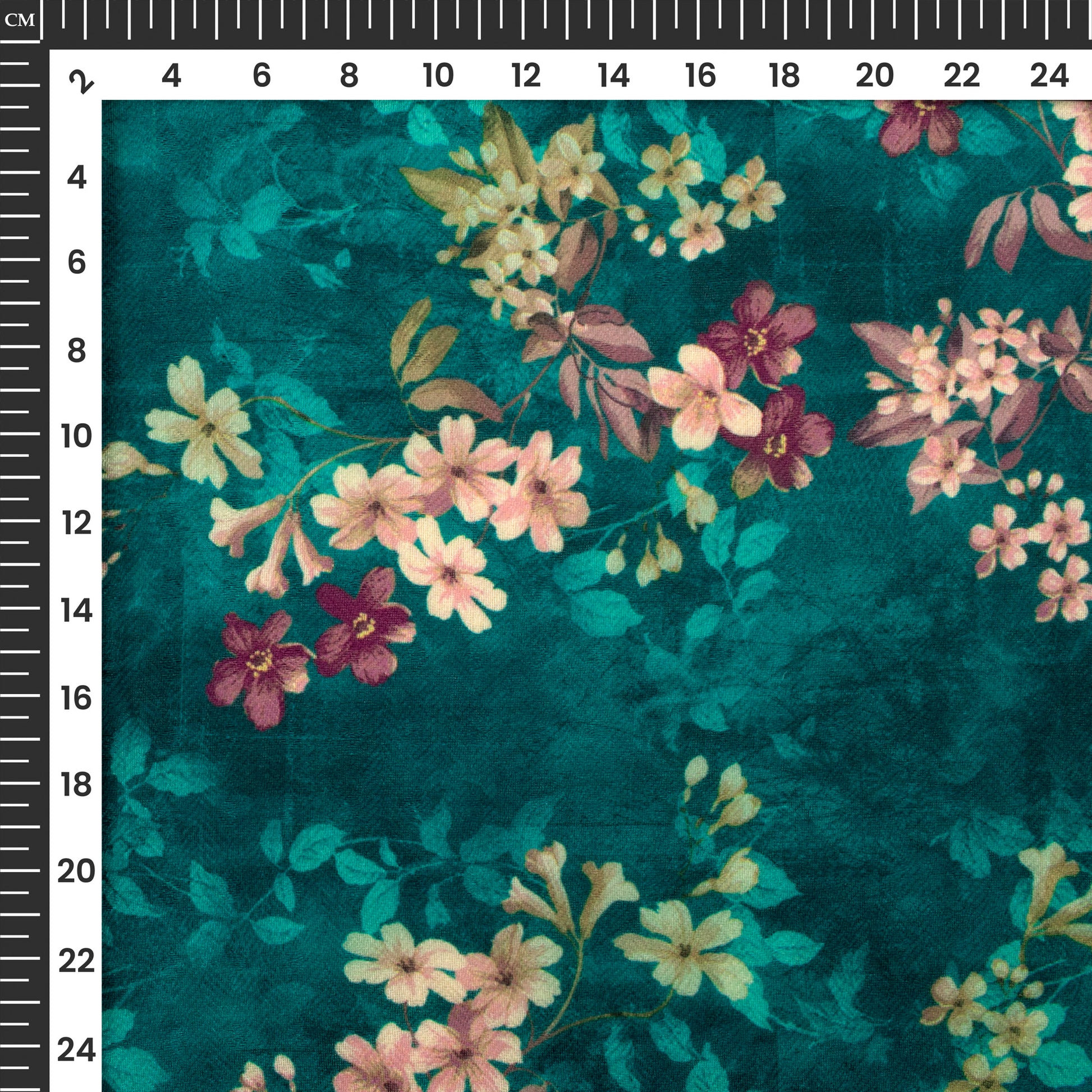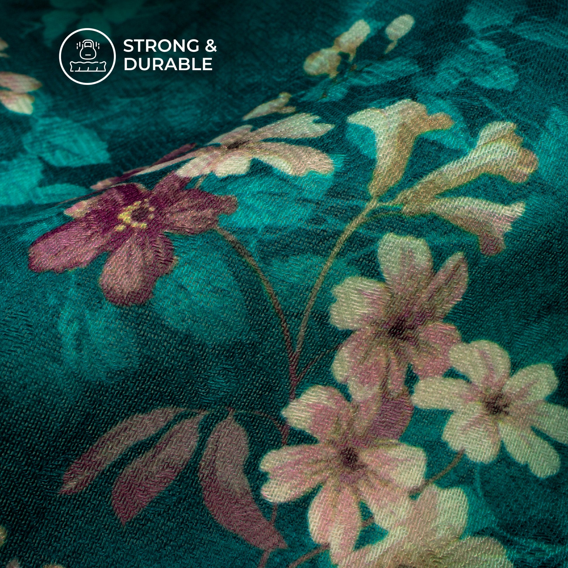 Carulean Blue Floral Digital Print Blend Pashmina Fabric