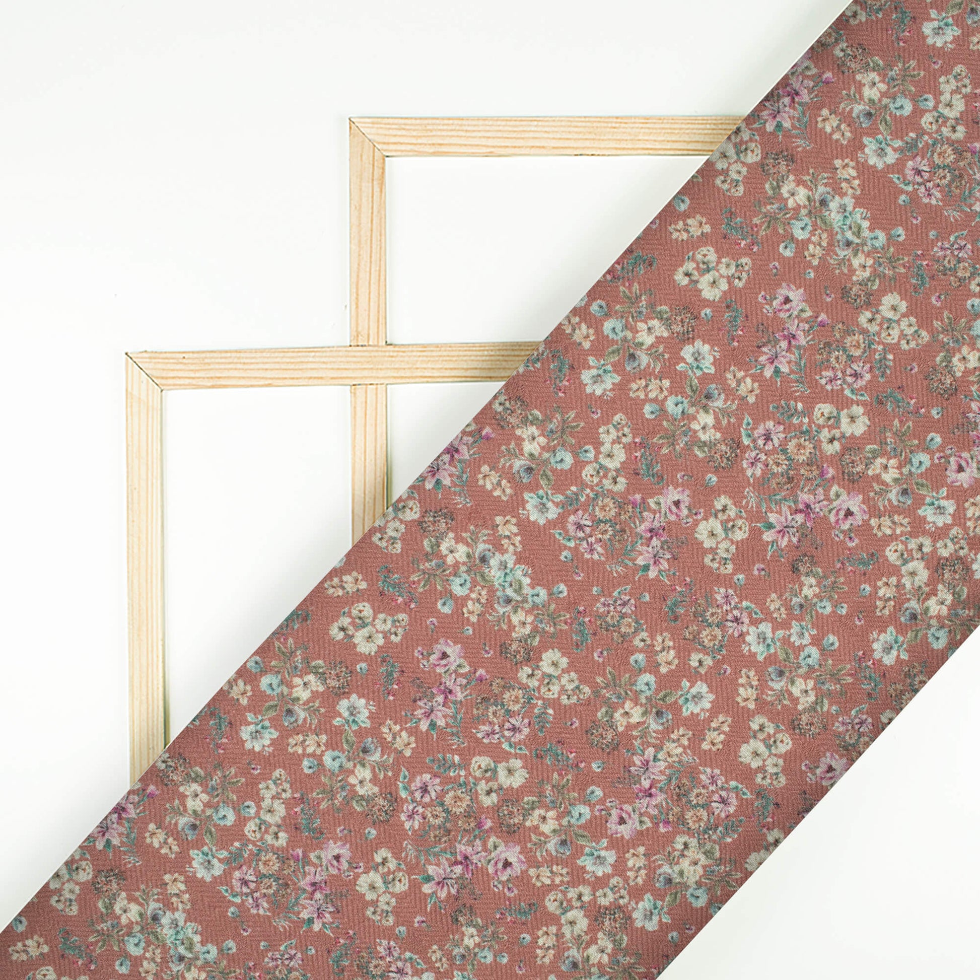 Cinnamon Brown And Cream Floral Pattern Digital Print Elegant Blend Pashmina Fabric