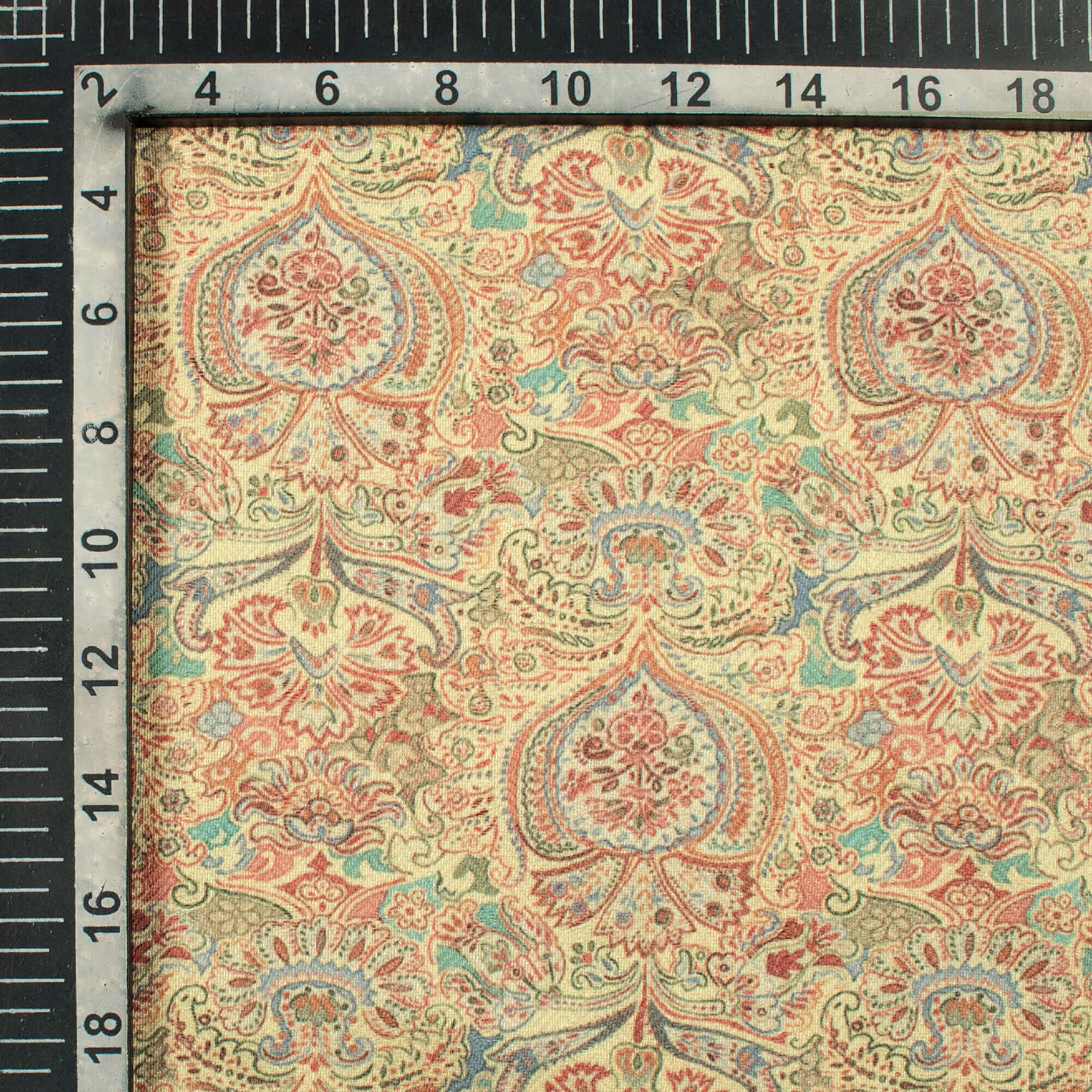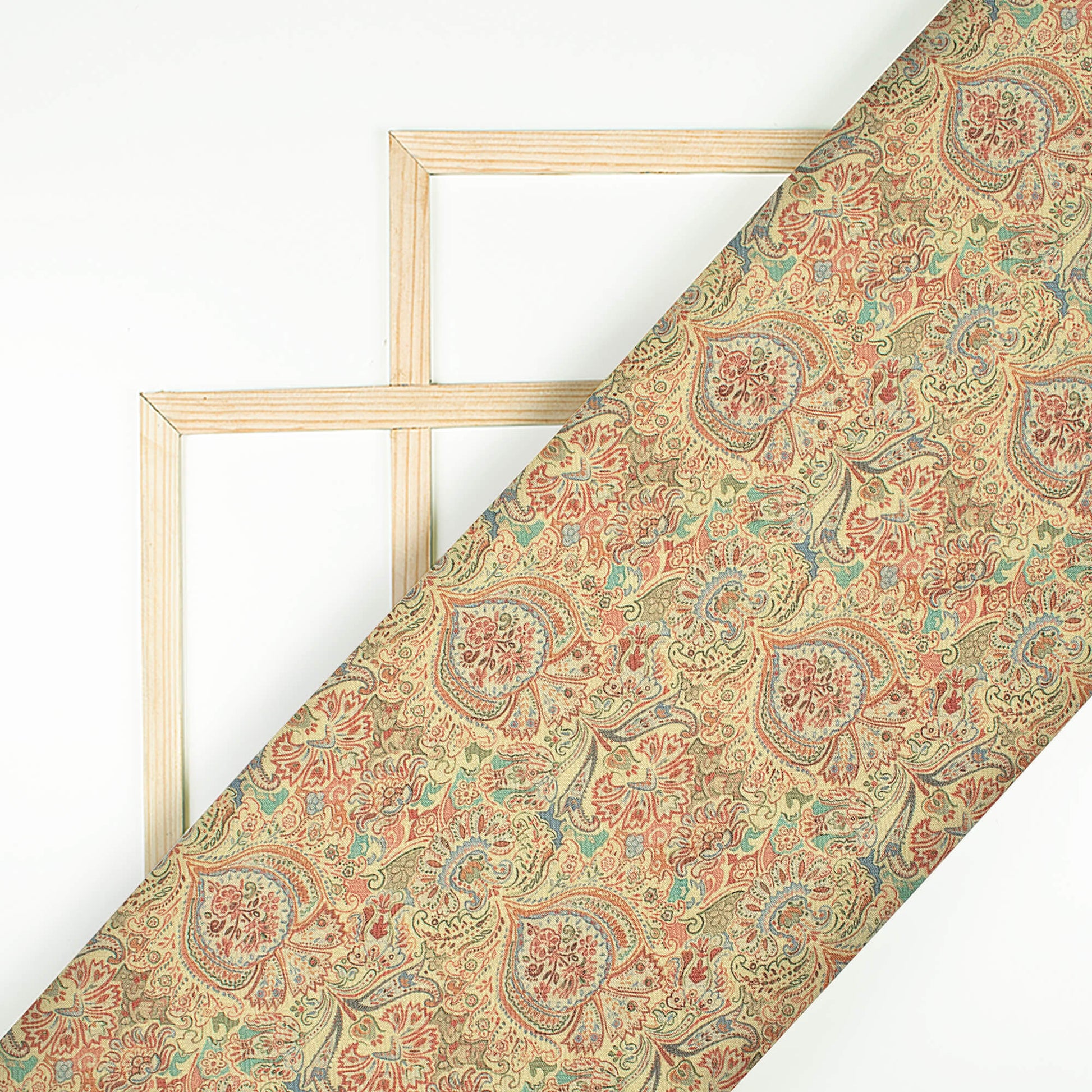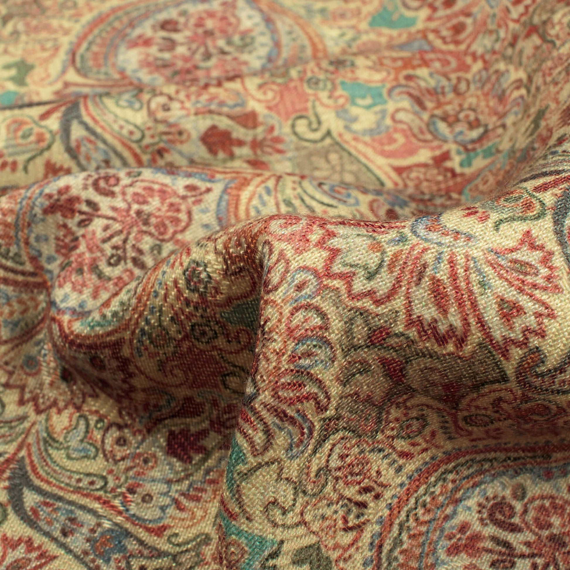 Cream And Red Ethnic Pattern Digital Print Elegant Blend Pashmina Fabric