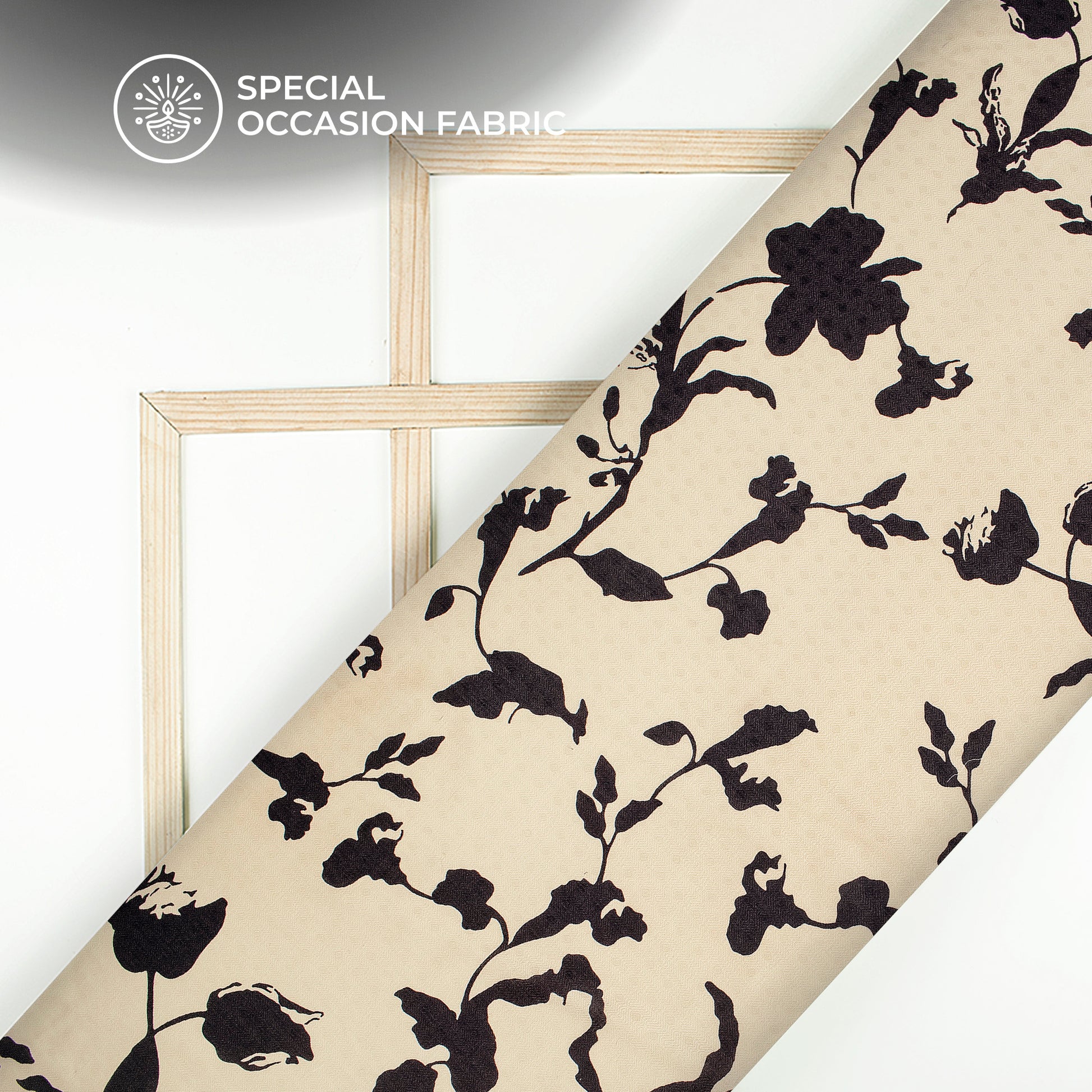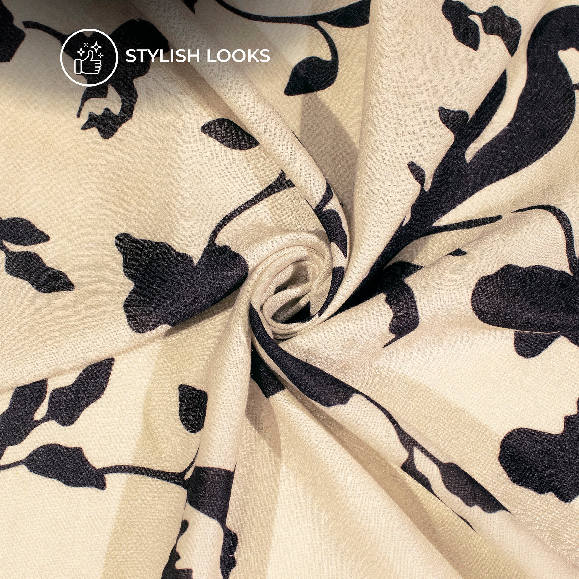 Cream Floral Digital Print Elegant Blend Pashmina Fabric