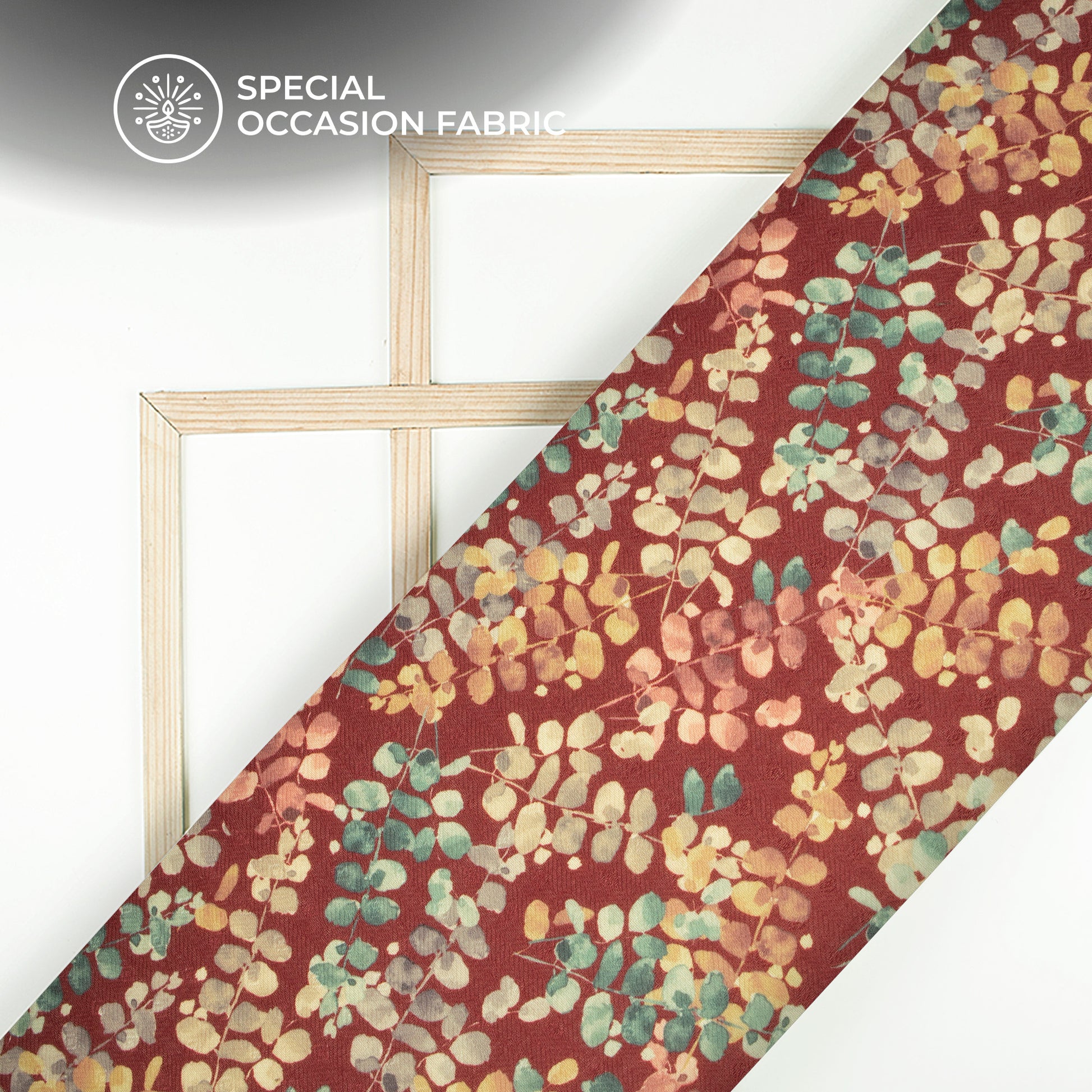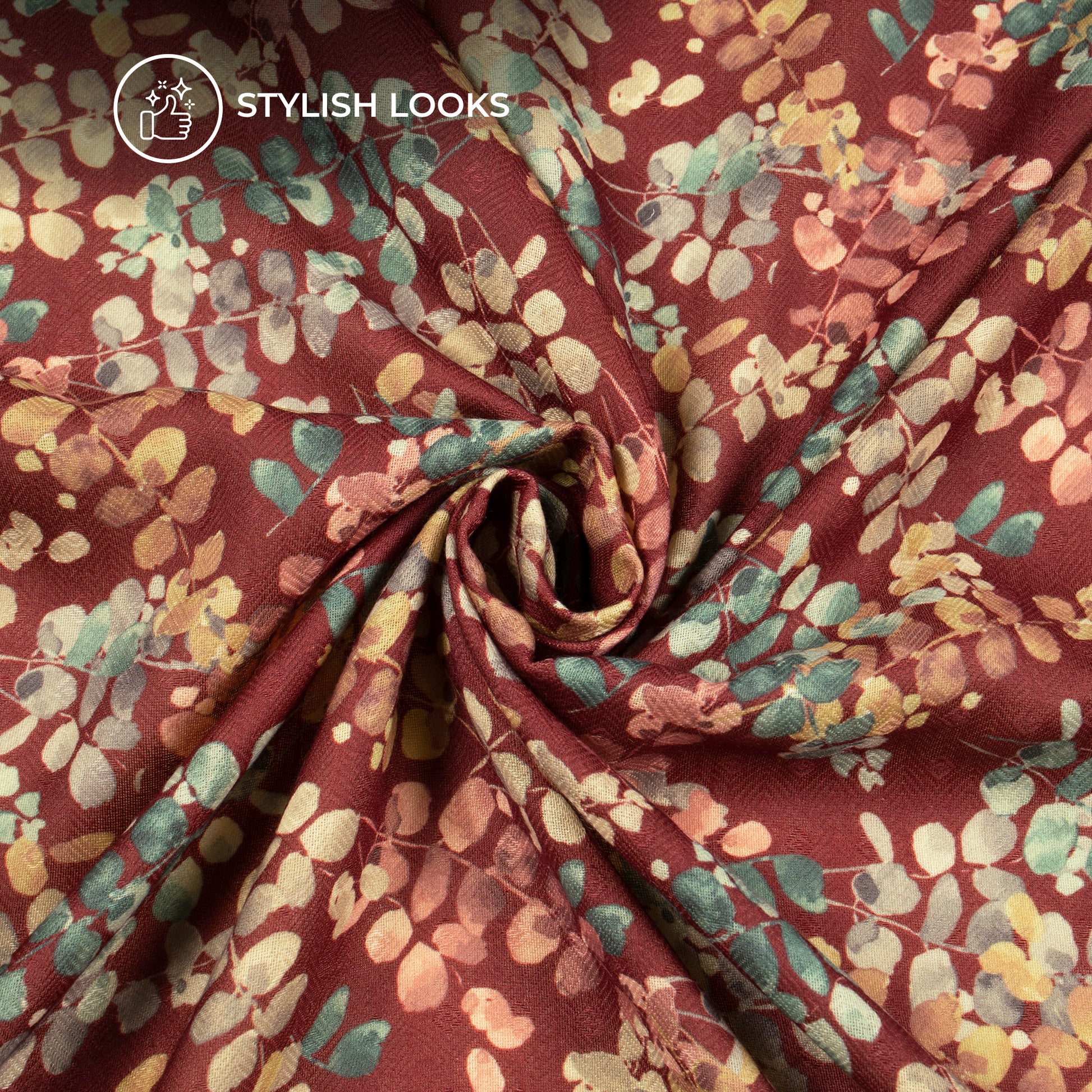 Dark Maroon Leaf Digital Print Blend Pashmina Fabric