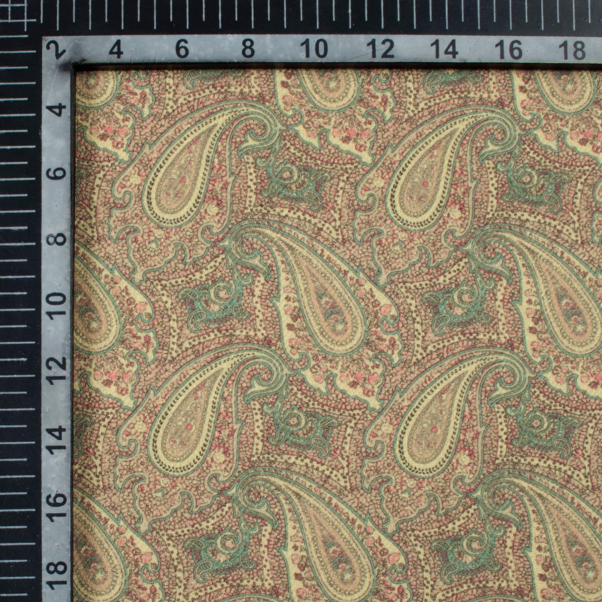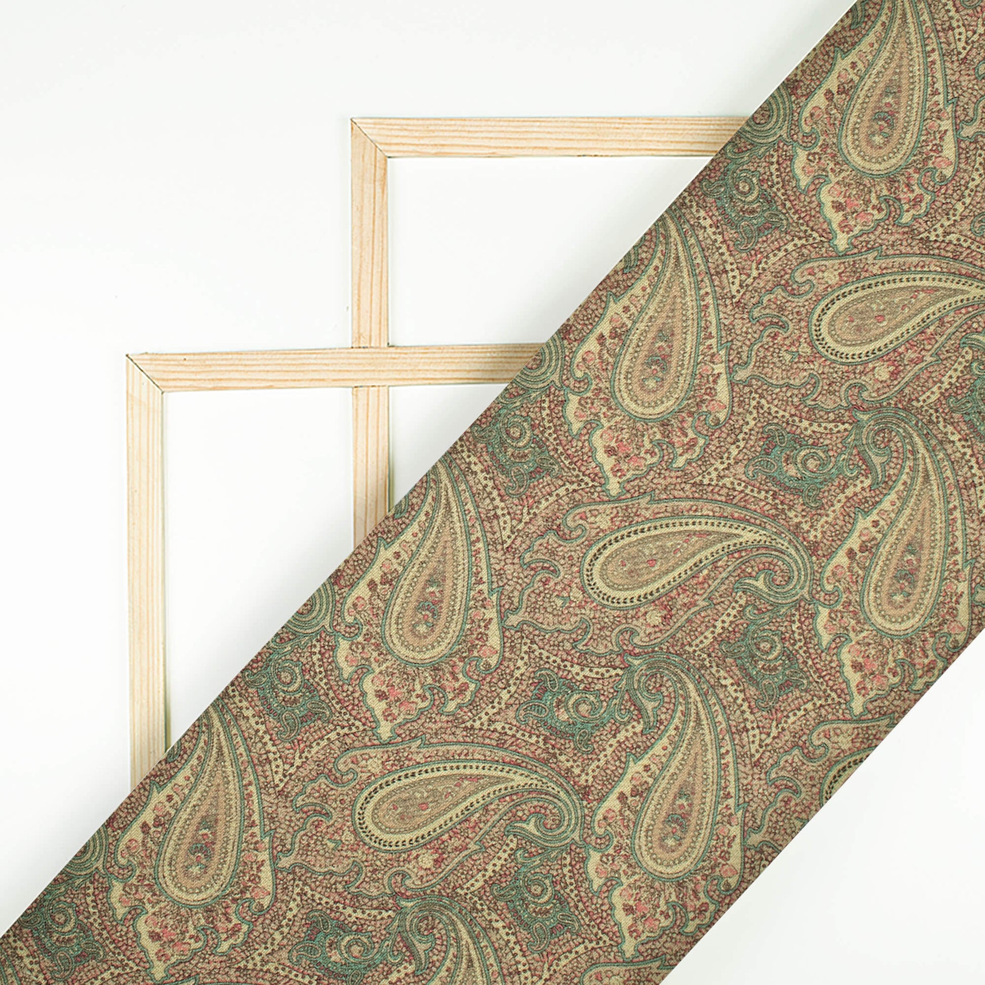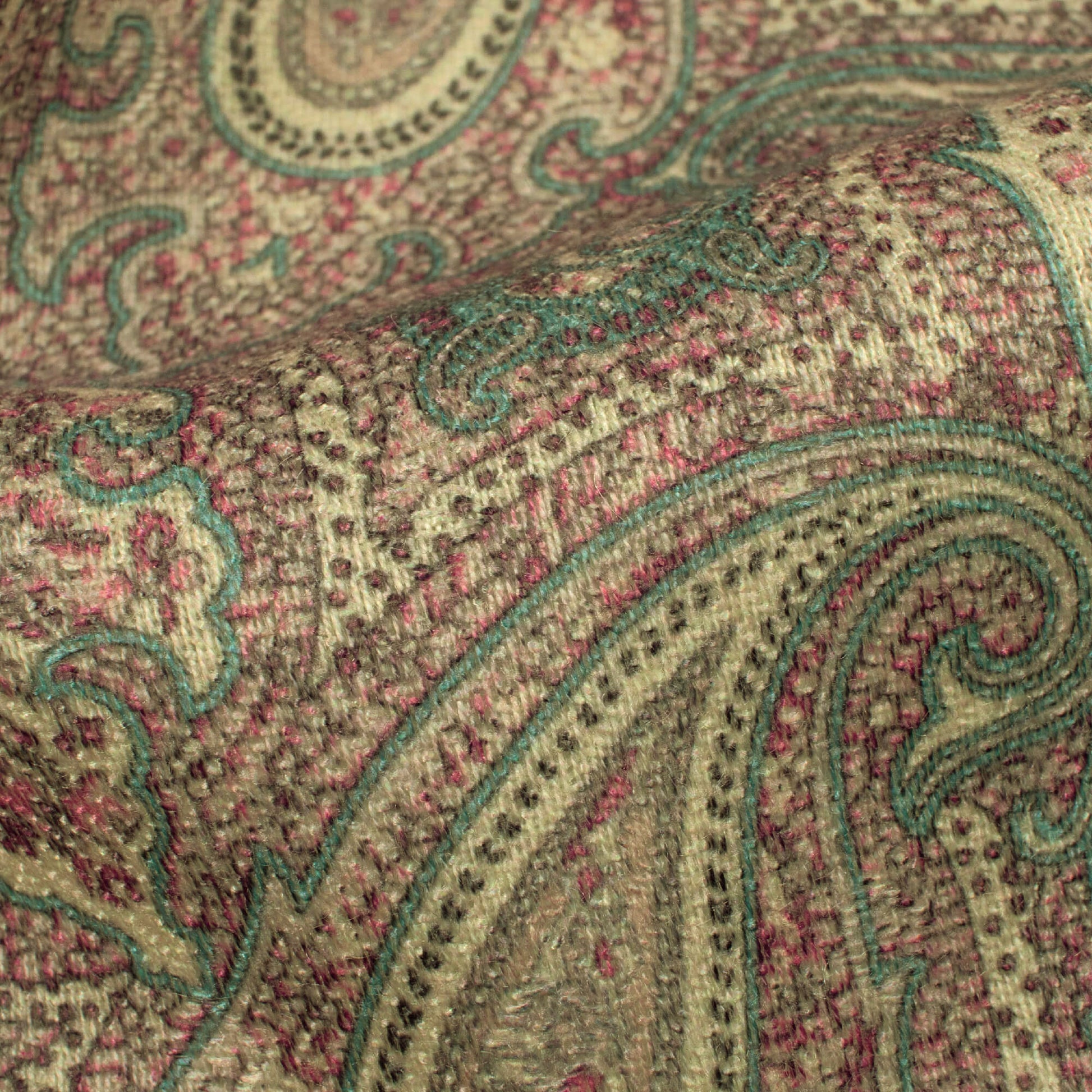 Deep Pink And Sea Green Paisley Pattern Digital Print Elegant Blend Pashmina Fabric