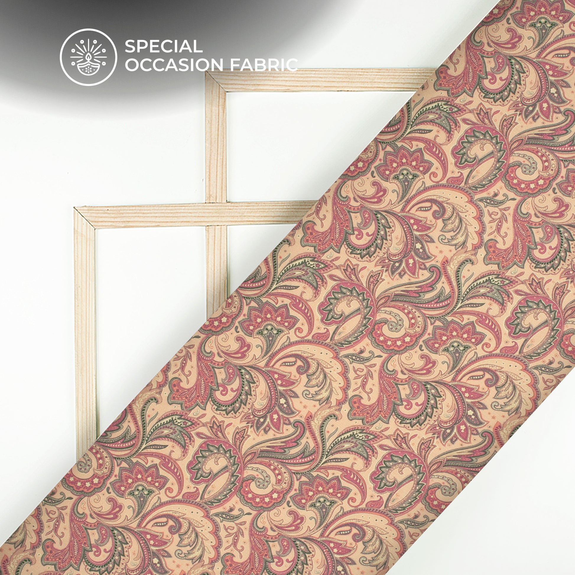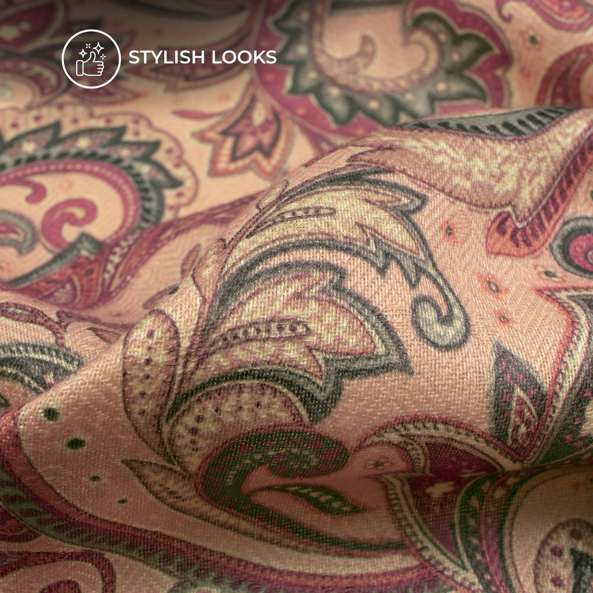 Flamingo Pink Floral Digital Print Elegant Blend Pashmina Fabric