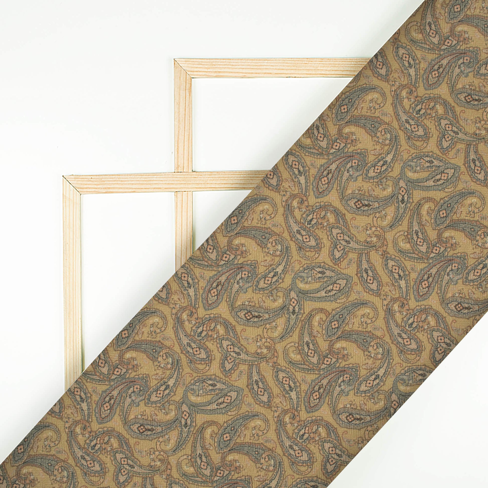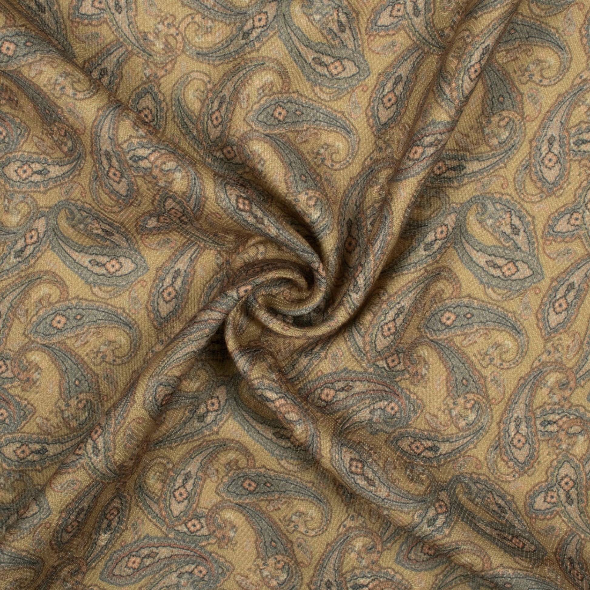 Flexen Yellow And Laurel Green Paisley Pattern Digital Print Elegant Blend Pashmina Fabric