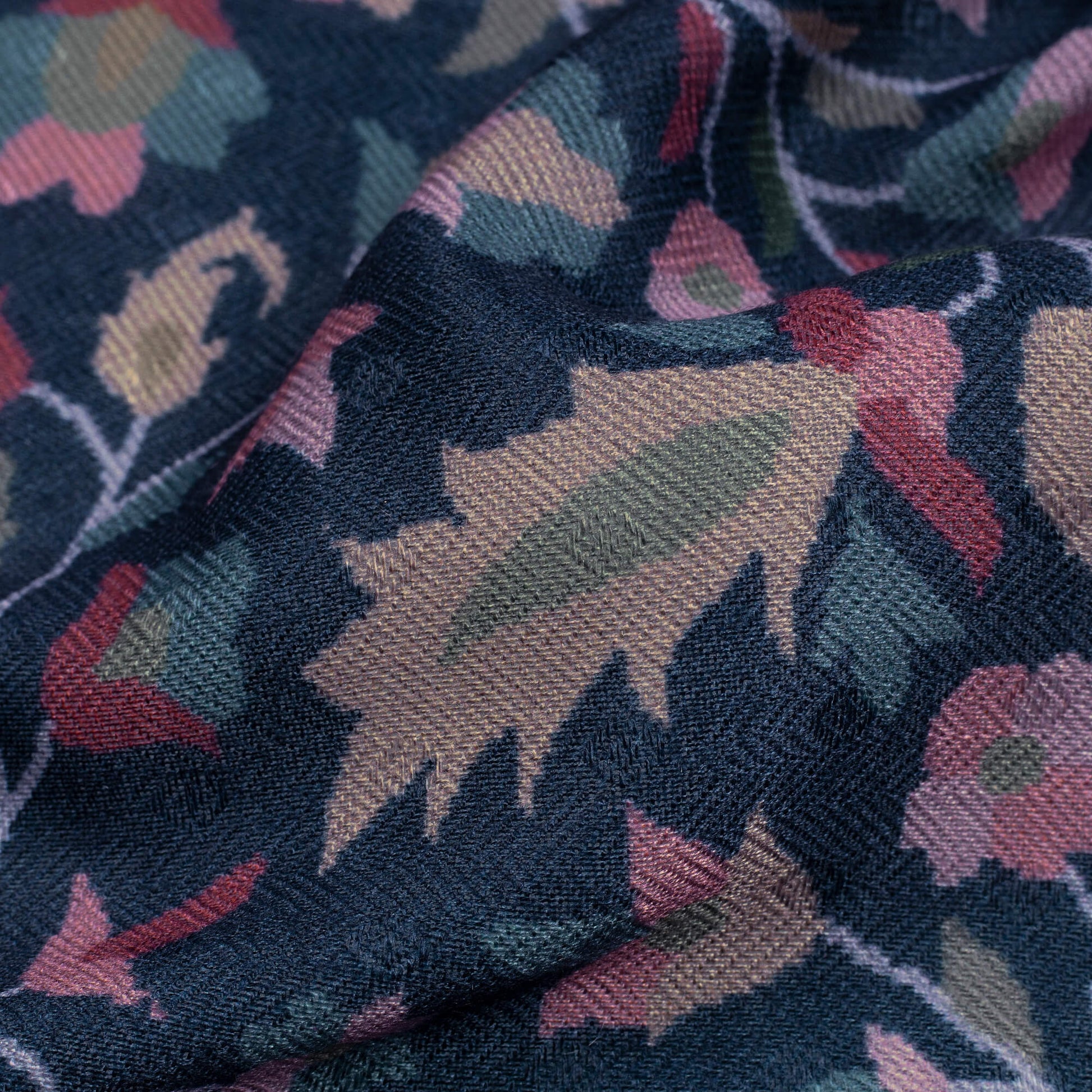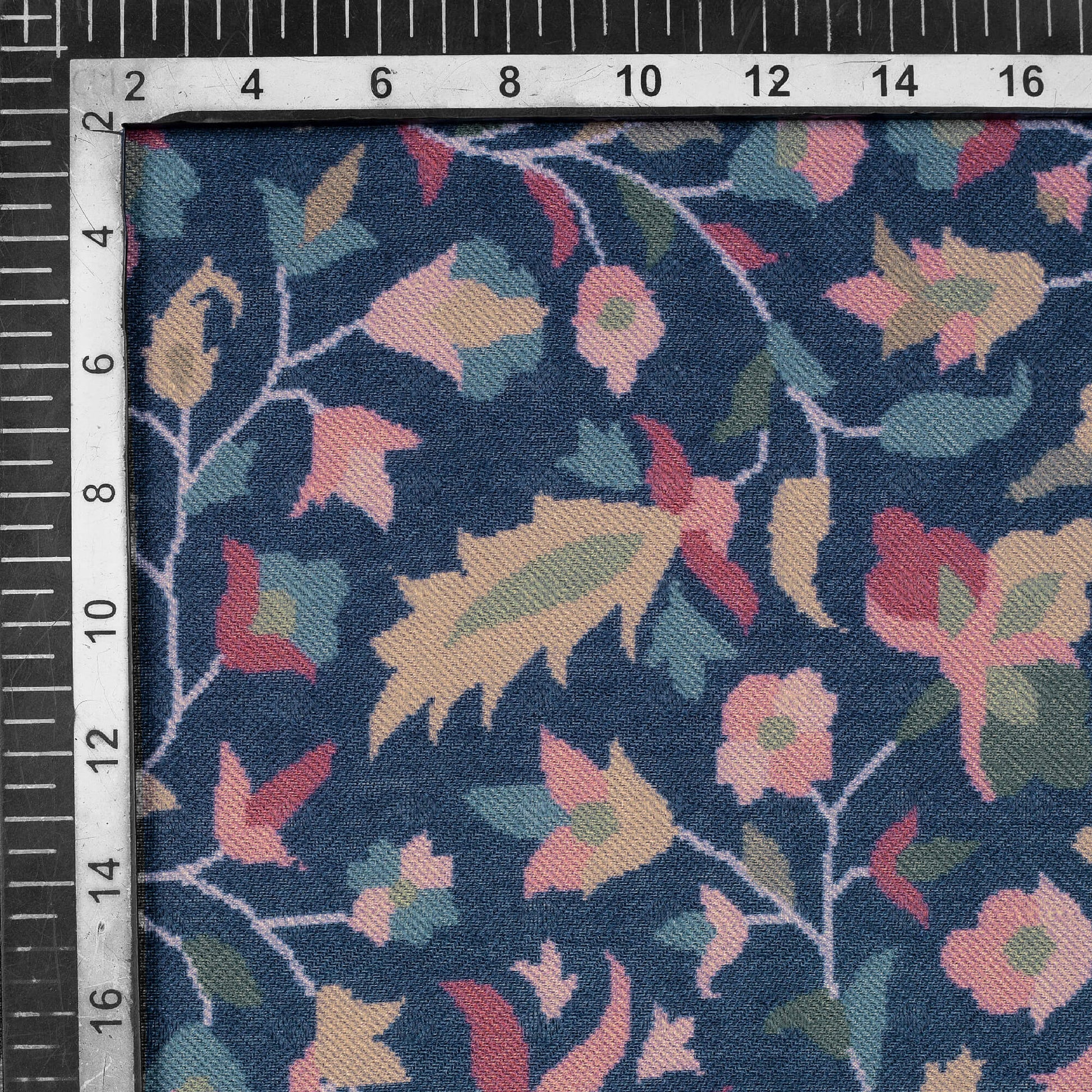 Prussian Blue And Red Floral Pattern Digital Print Elegant Blend Pashmina Fabric