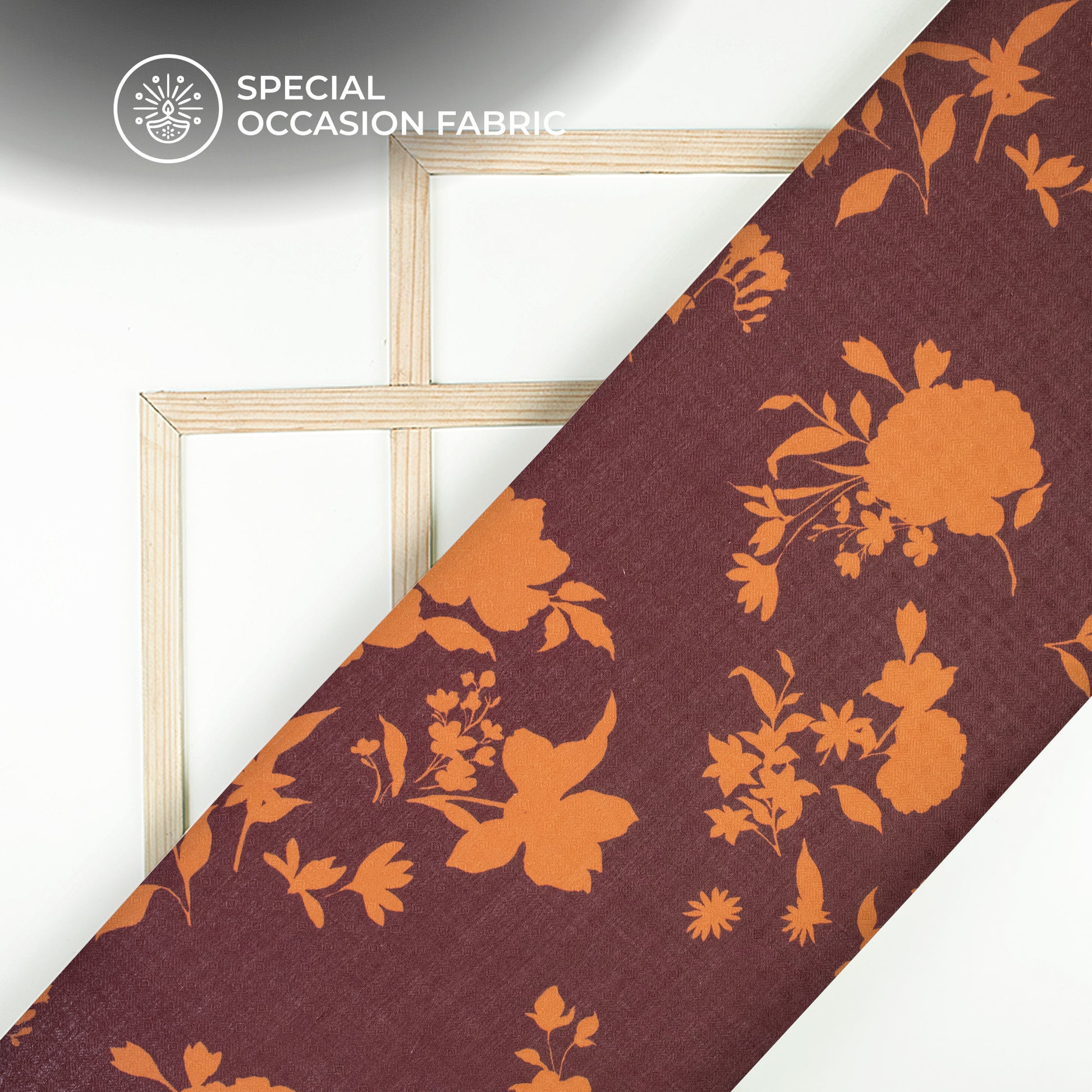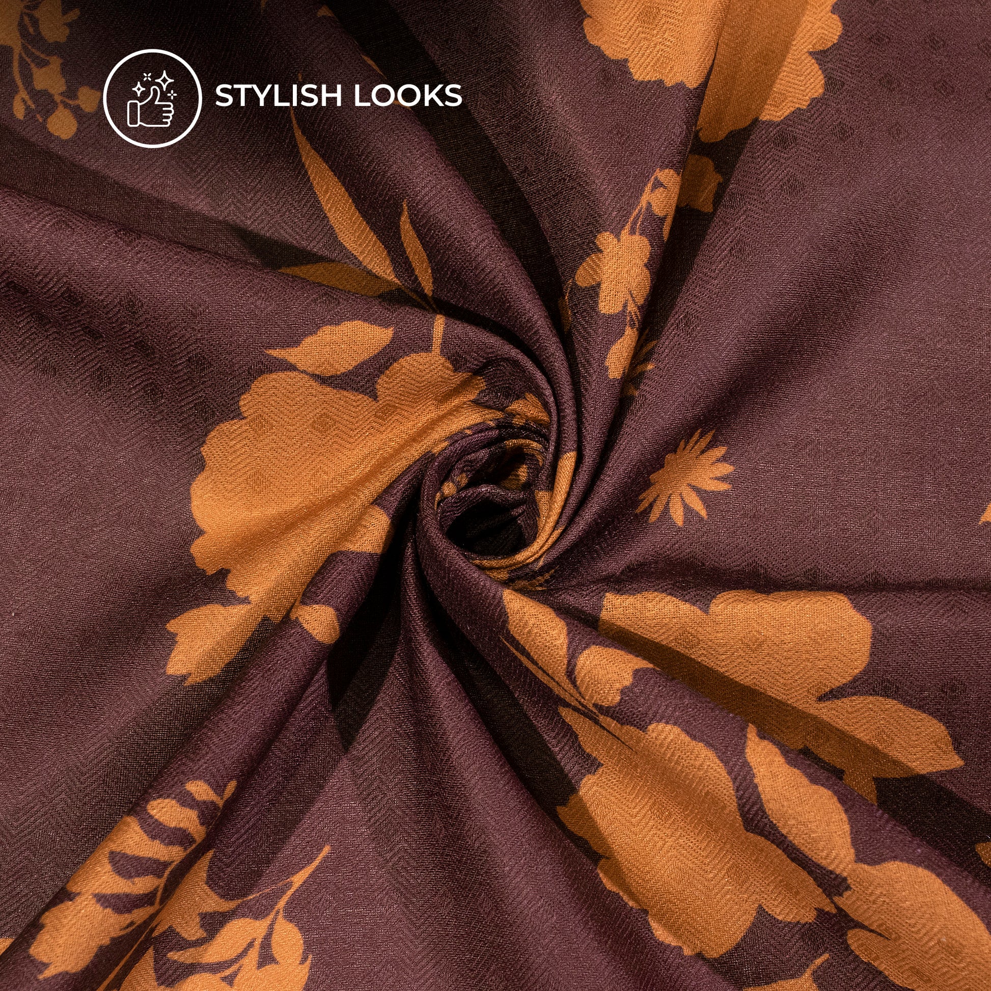 Hickory Brown Floral Digital Print Elegant Blend Pashmina Fabric